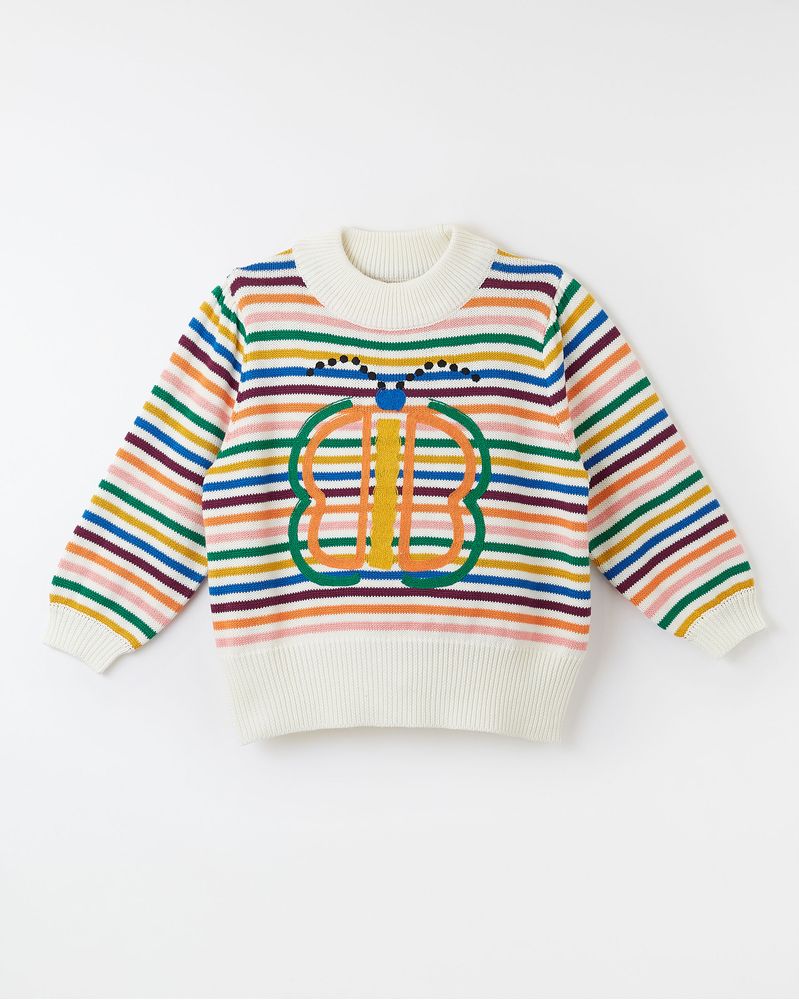 O charme desta peça fica por conta da estampa exclusiva que combina listras coloridas e uma delicada borboleta posicionada na parte frontal. As cores vivas das listras transmitem alegria e personalidade, enquanto o desenho da borboleta simboliza leveza, transformação e imaginação — tudo aquilo que representa tão bem a fase mágica da infância.