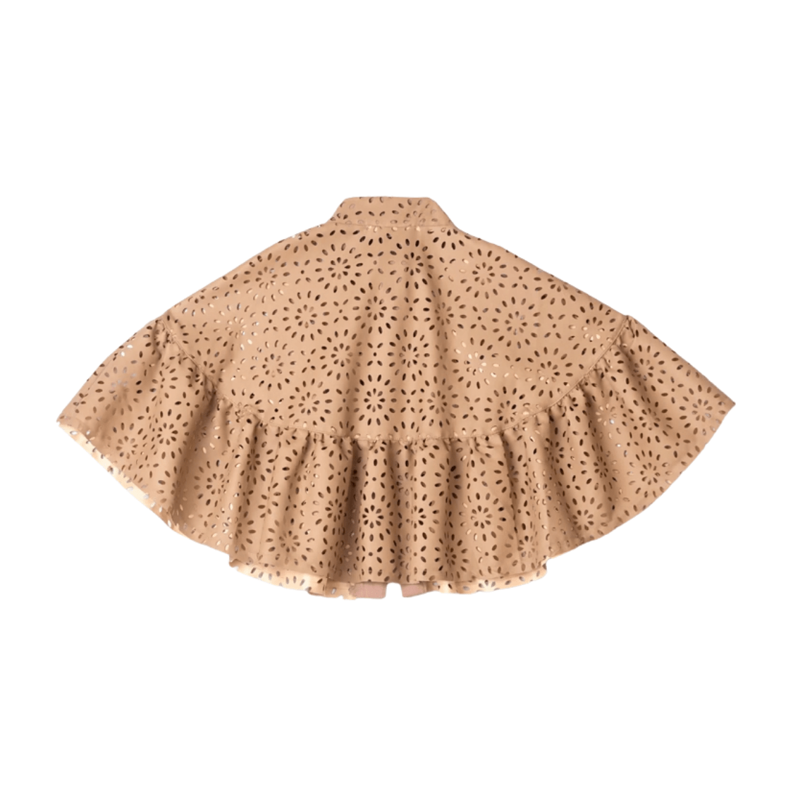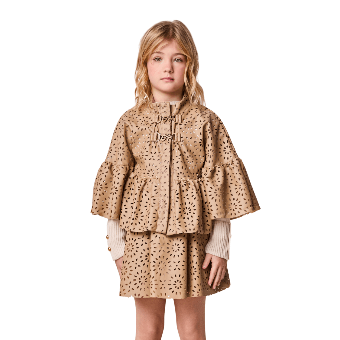 O Casaco Capa em Couro Vazado Mocca Animê é uma peça sofisticada e cheia de estilo, perfeita para compor looks infantis elegantes e modernos. Com design diferenciado, o modelo em formato de capa traz um visual fashionista e delicado, ideal para ocasiões especiais.