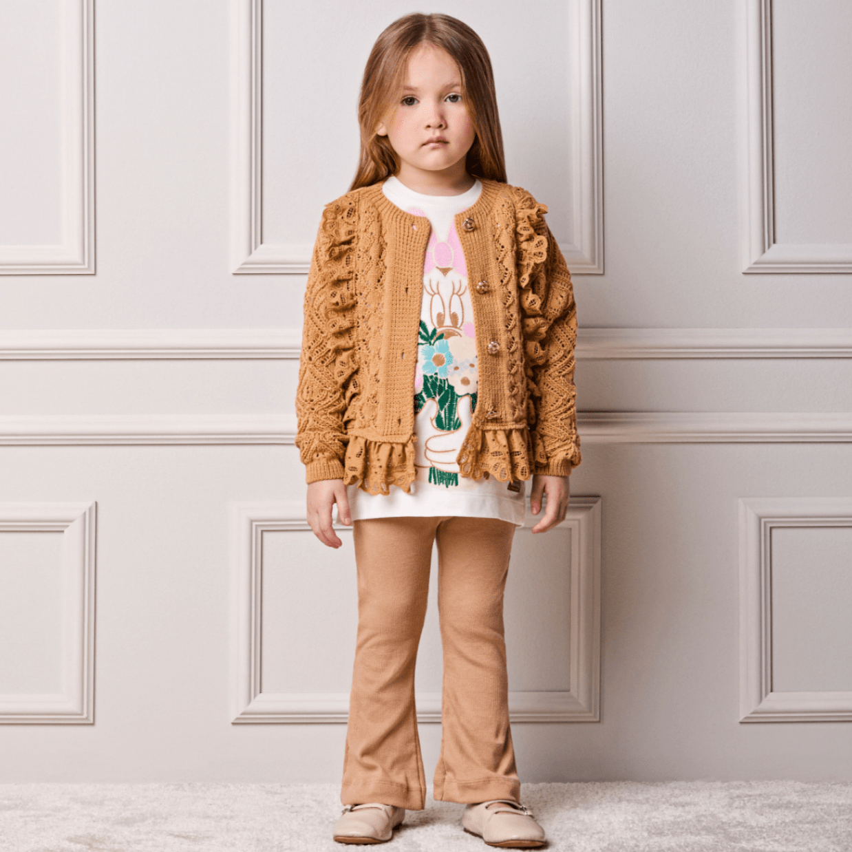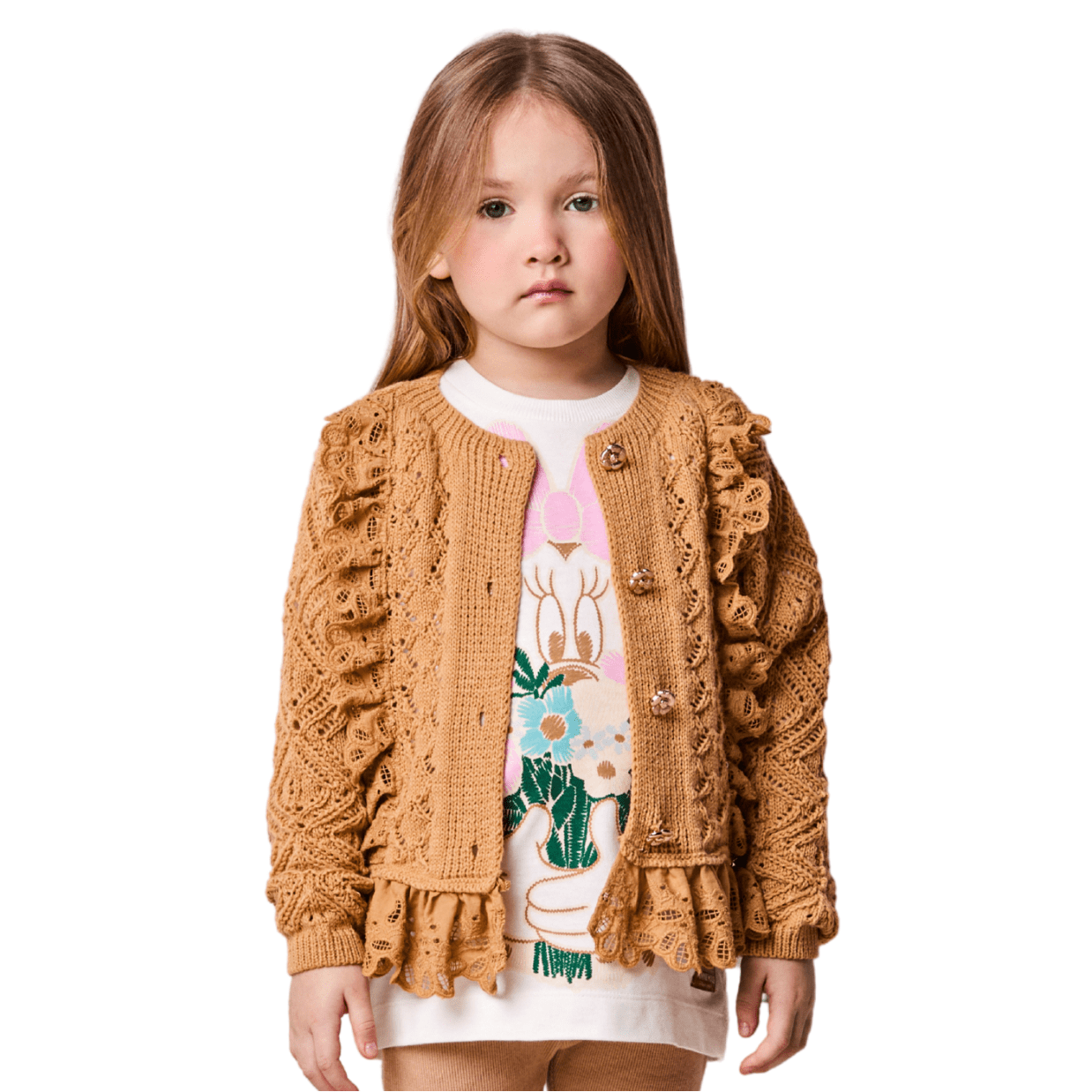 O Casaco Cardigan Tricot Caramelo com Renda Animê é a peça perfeita para compor looks delicados, aconchegantes e cheios de charme. Com um design rico em detalhes, ele traz sofisticação e um toque romântico para o visual infantil.