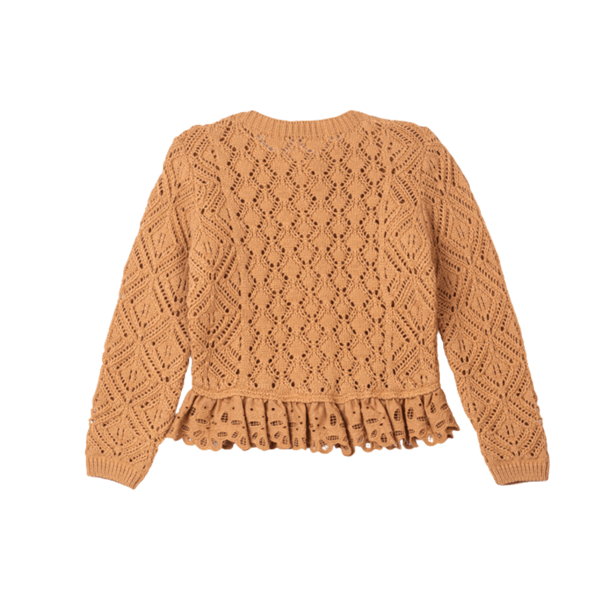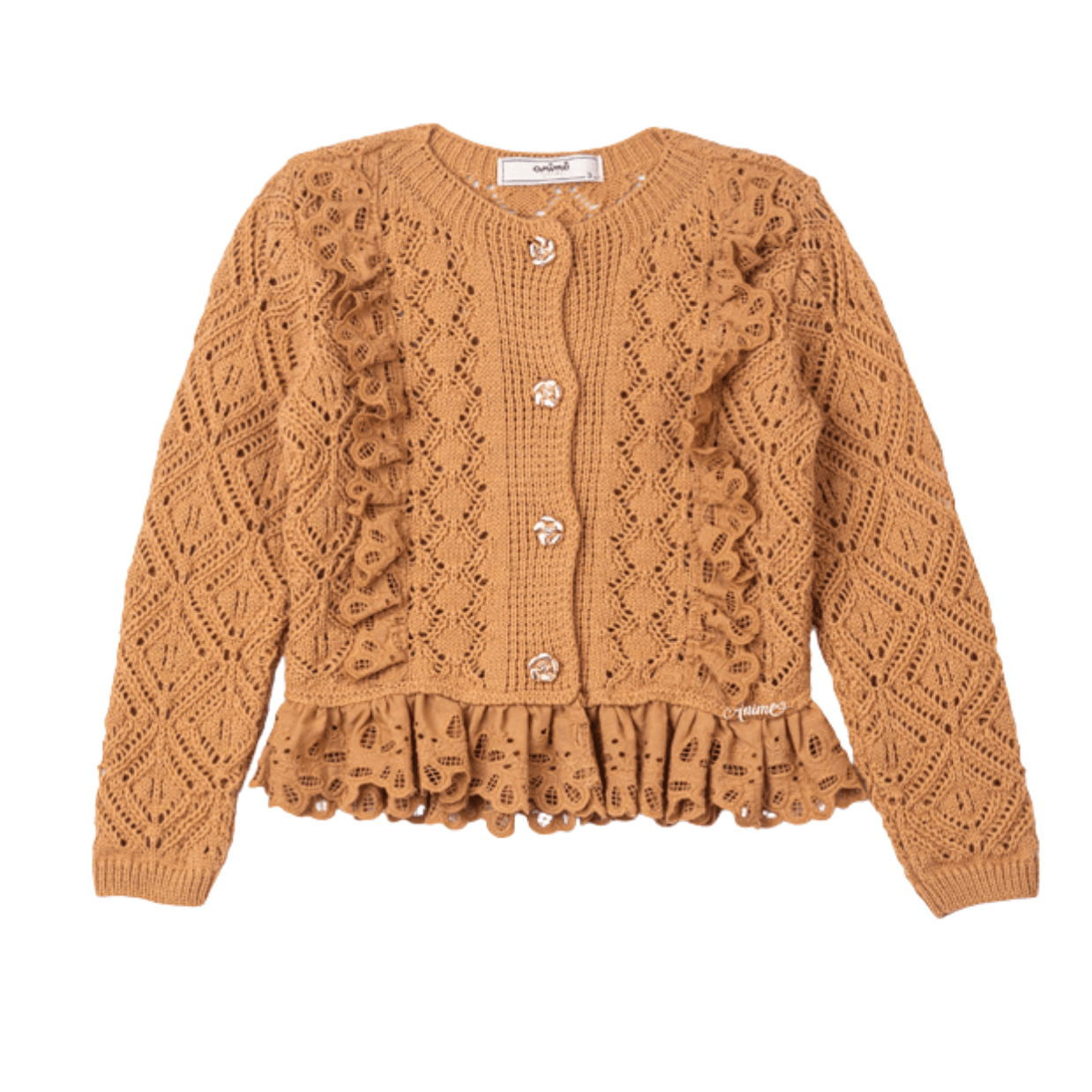 Casaco Cardigan Tricot Caramelo com Renda Animê