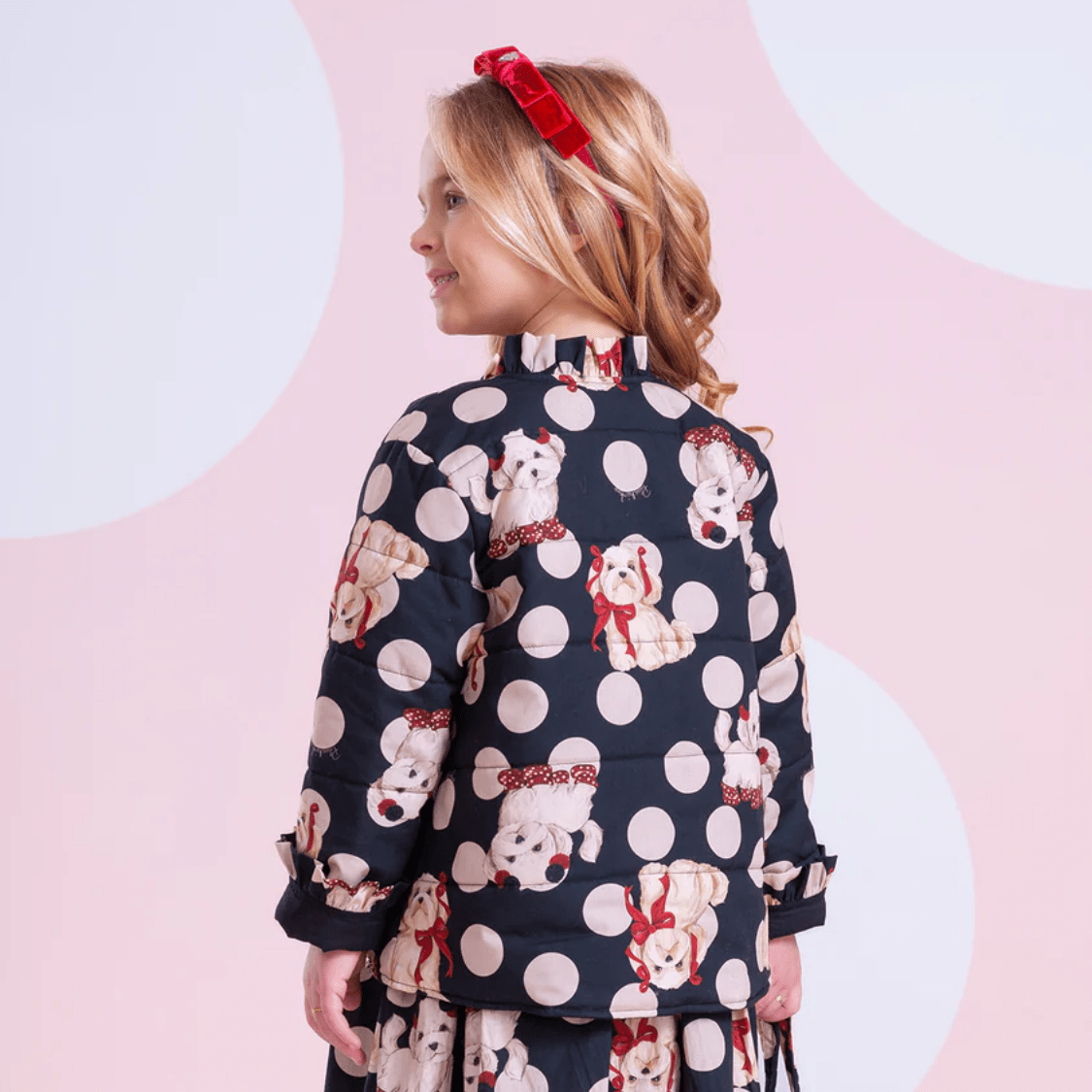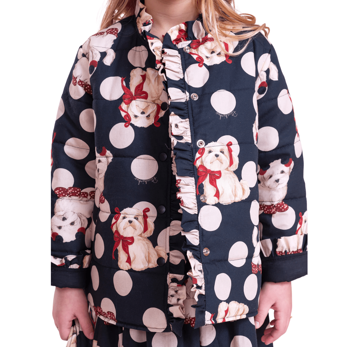 Casaco Puffer Algodão Estampa Poá Cachorros Pituchinhus