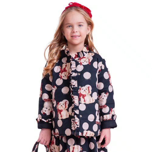 O Casaco Puffer Algodão Estampa Poá Cachorros Pituchinhus é uma peça encantadora que une conforto, proteção térmica e um design lúdico cheio de personalidade. Com estampa exclusiva, o modelo combina poás clássicos com ilustrações delicadas de cachorrinhos, criando um visual divertido e sofisticado.