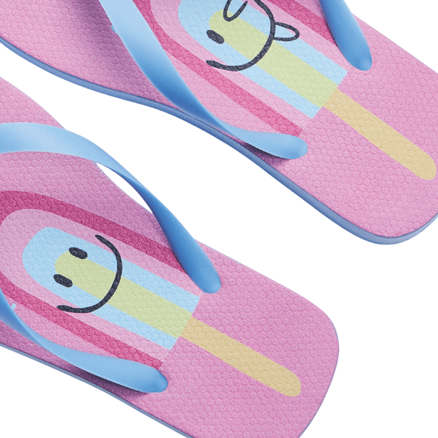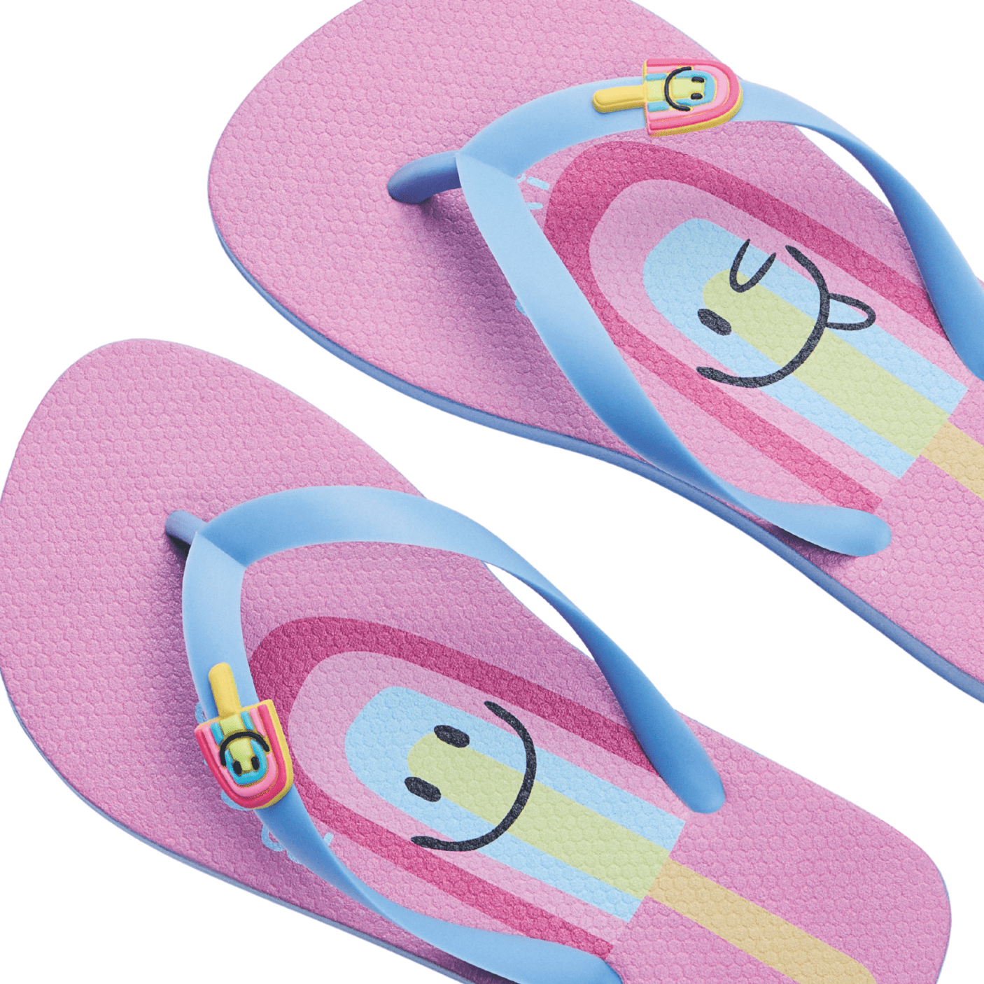 O Chinelo Havaí Lilás Arco-Íris Momi é a escolha perfeita para acompanhar os dias de sol com muito conforto e alegria. Com design divertido, ele traz a estampa de um delicioso picolé colorido em tons vibrantes que remetem ao universo infantil cheio de leveza e diversão.