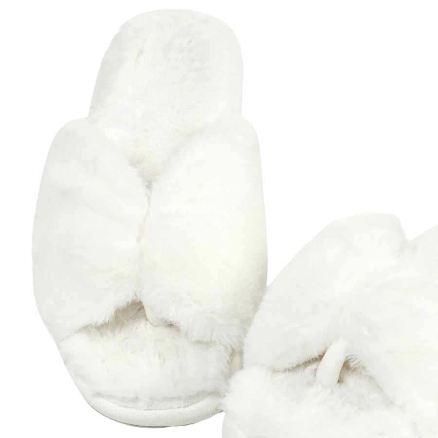 Com acabamento em pelinho macio e toque ultra confortável, o modelo traz design moderno e delicado na cor branca, perfeito para momentos de relaxamento em casa. Leve, quentinho e extremamente confortável, é ideal para complementar looks comfy com estilo.