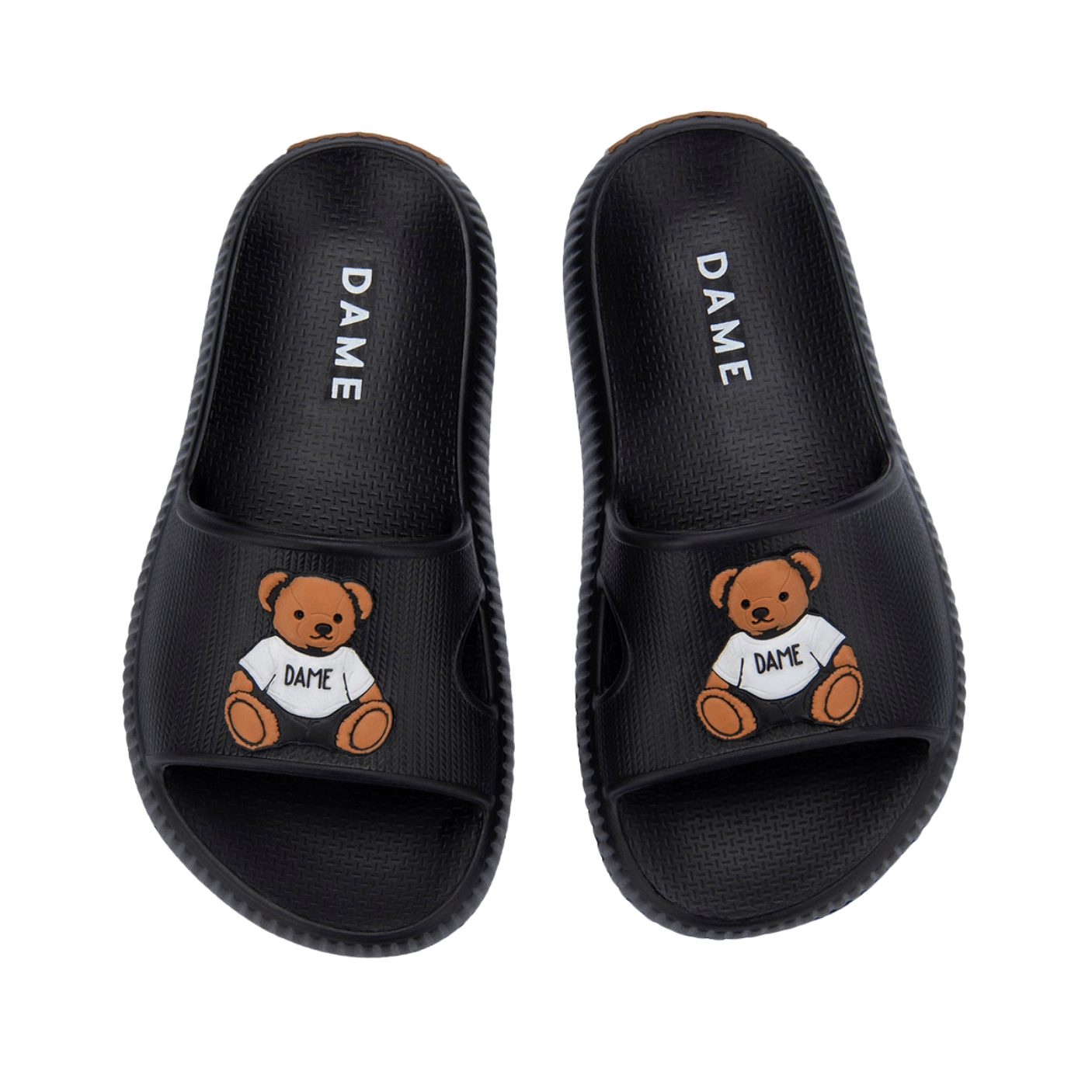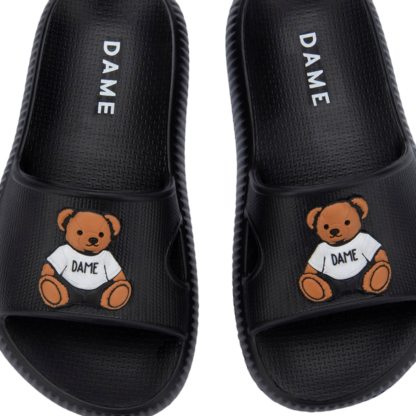 Conforto, estilo e fofura em cada passo! O Chinelo Slide Preto Urso Dame é perfeito para quem ama unir praticidade com personalidade. Com design moderno e solado anatômico, ele apresenta aplicação de ursinho super charmosa na tira, que garante um toque divertido e exclusivo ao visual.
