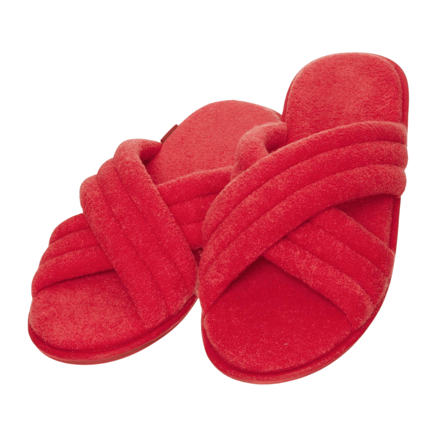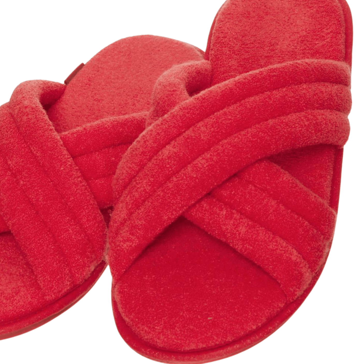 Com design moderno de tiras largas cruzadas, o chinelo garante ajuste seguro e confortável, além de um visual sofisticado que nunca sai de moda. Sua cor vermelho rubino adiciona intensidade e personalidade ao look, permitindo combinações estilosas e versáteis no dia a dia.