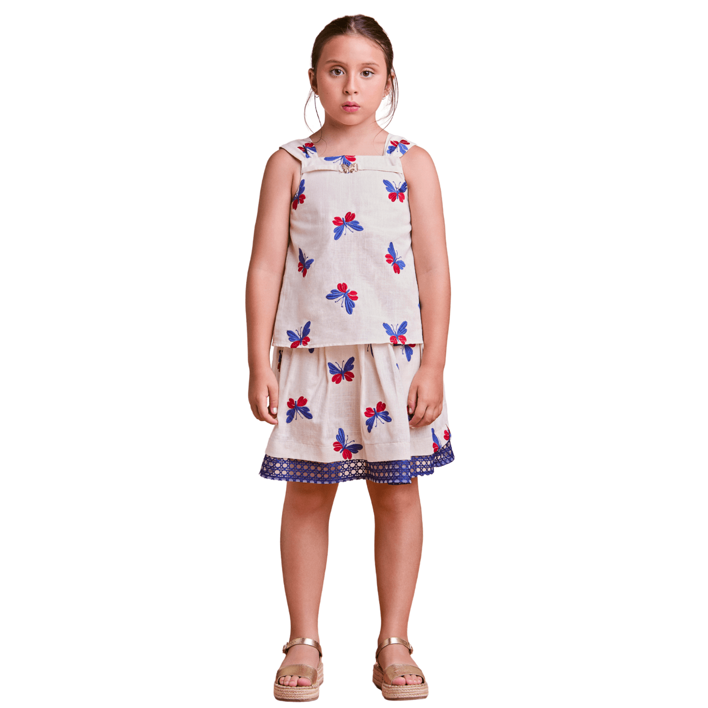 Conjunto Infantil Bege com Borboletas Bordadas – Anime