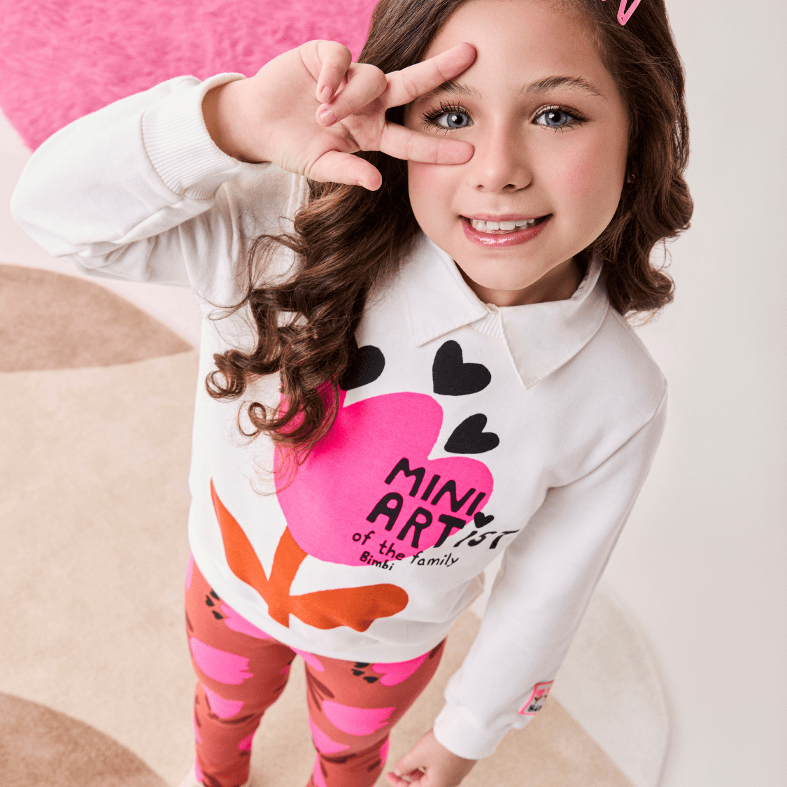 O Conjunto Blusão e Legging Tulipas Bimbi é a escolha perfeita para meninas que amam looks confortáveis, coloridos e cheios de estilo! Com uma proposta alegre e moderna, a combinação traz estampa de tulipas e cores vibrantes que deixam o visual encantador.
