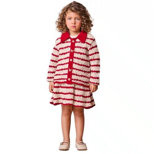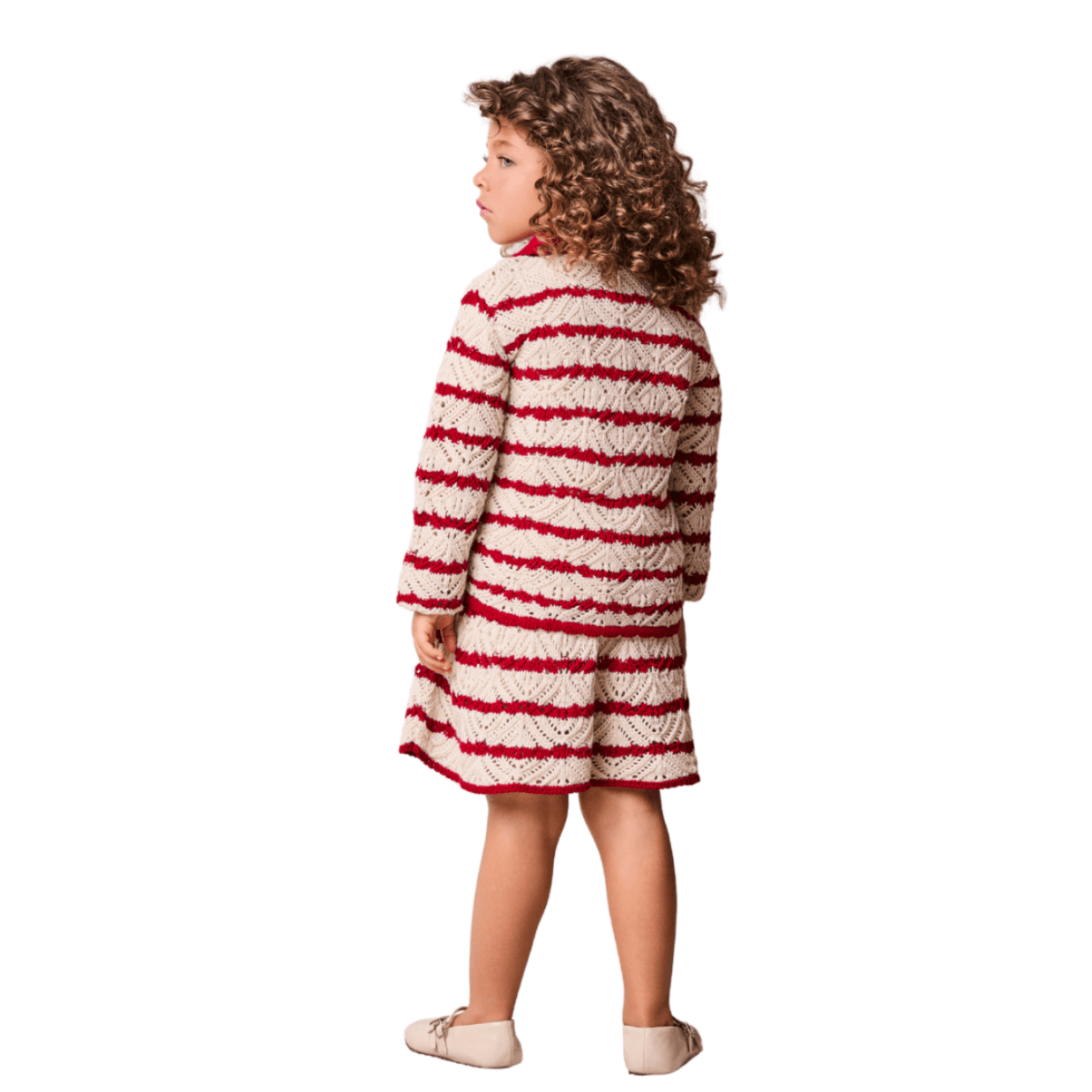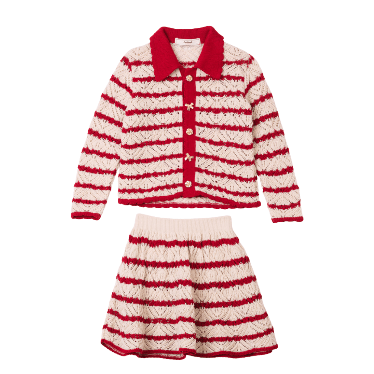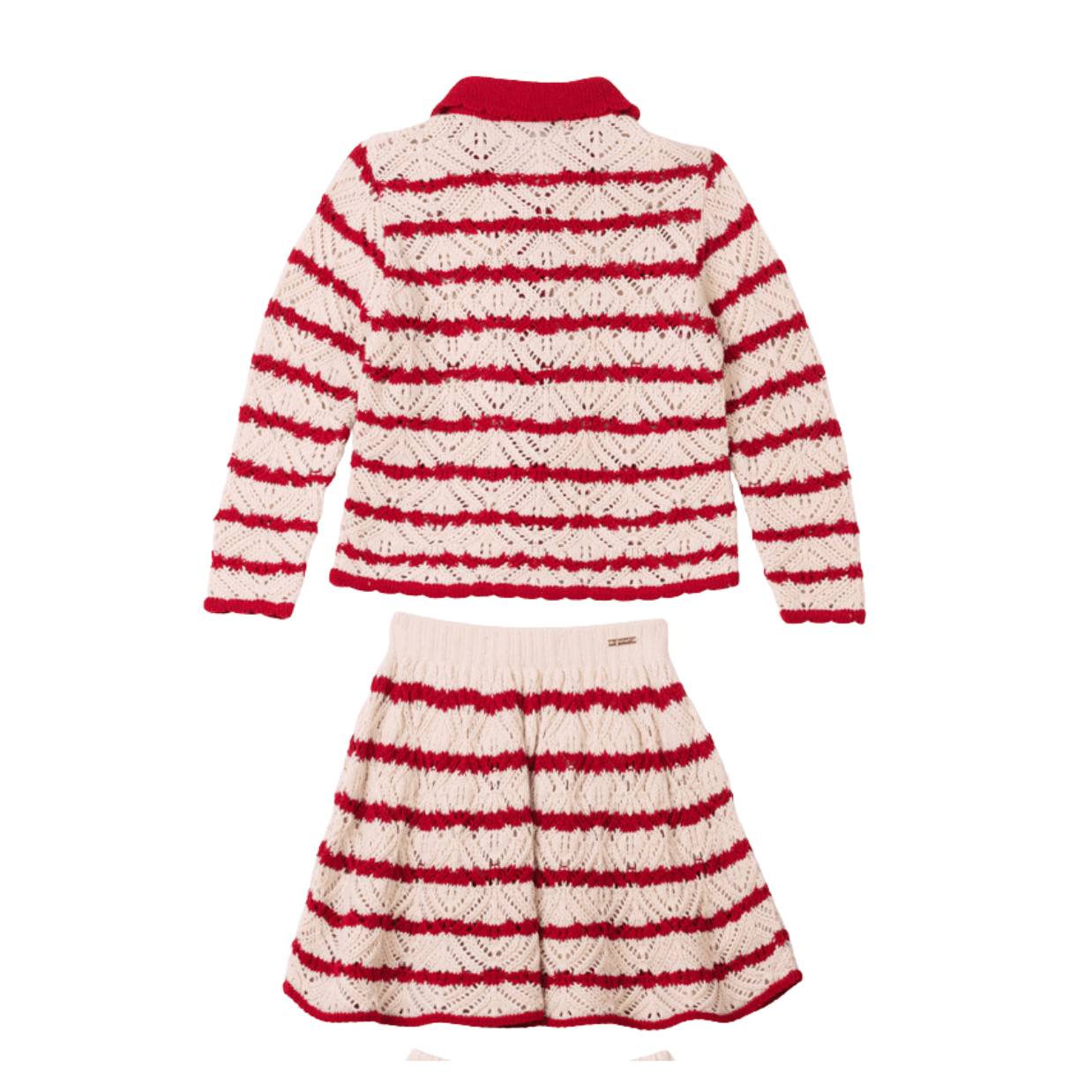 Conjunto Camisa Tricot Bege e Vermelho Animê