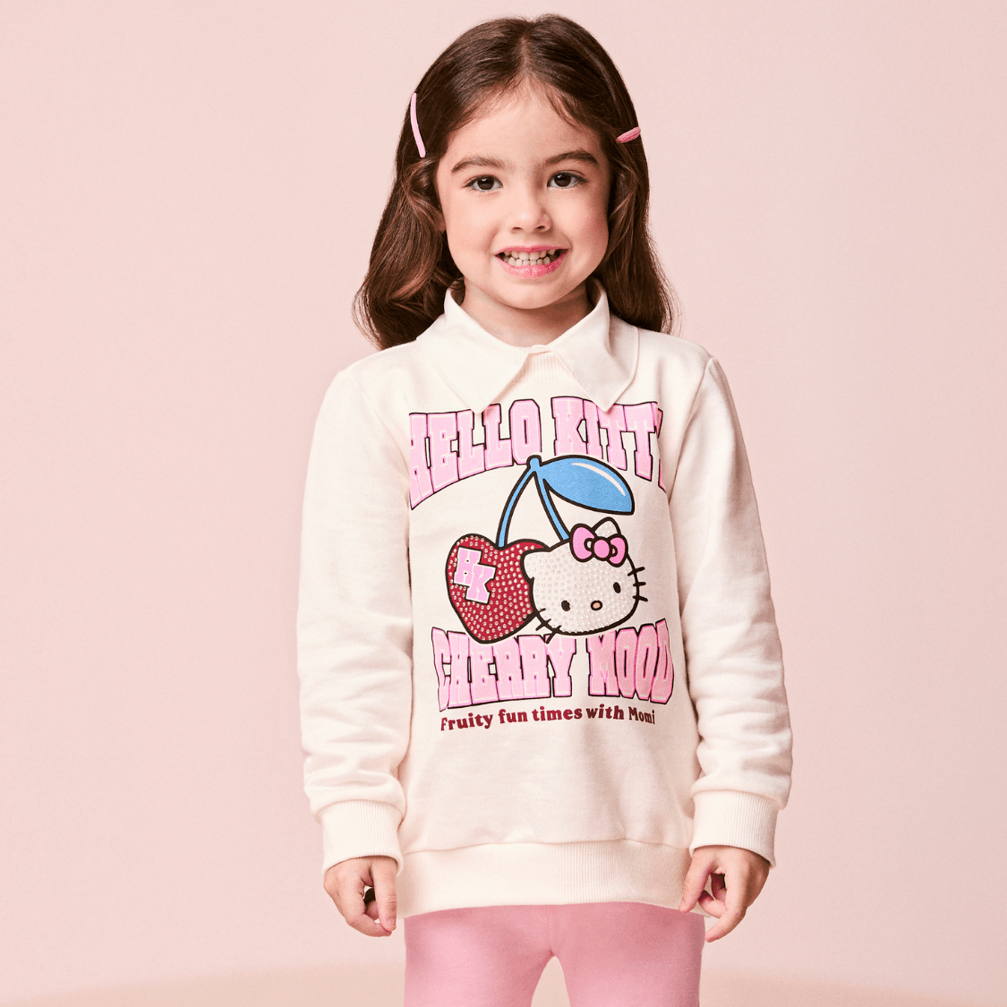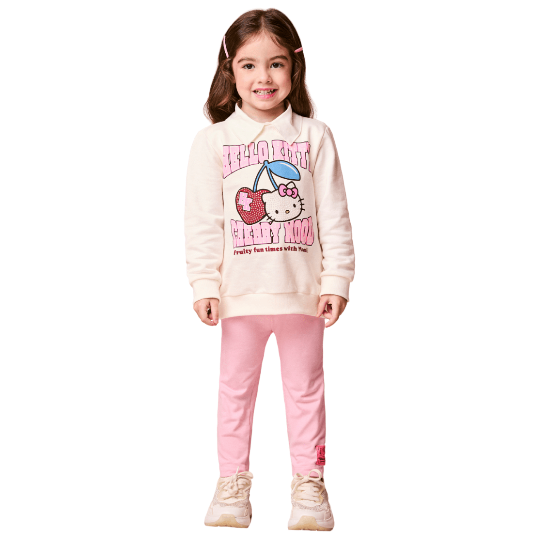 O Conjunto com Legging Hello Kitty Cherry Momi é a escolha perfeita para deixar os looks das pequenas ainda mais fofos, confortáveis e cheios de estilo