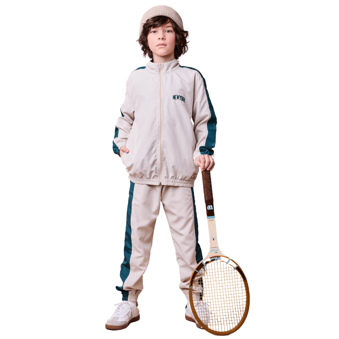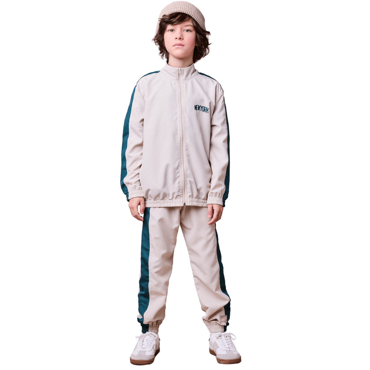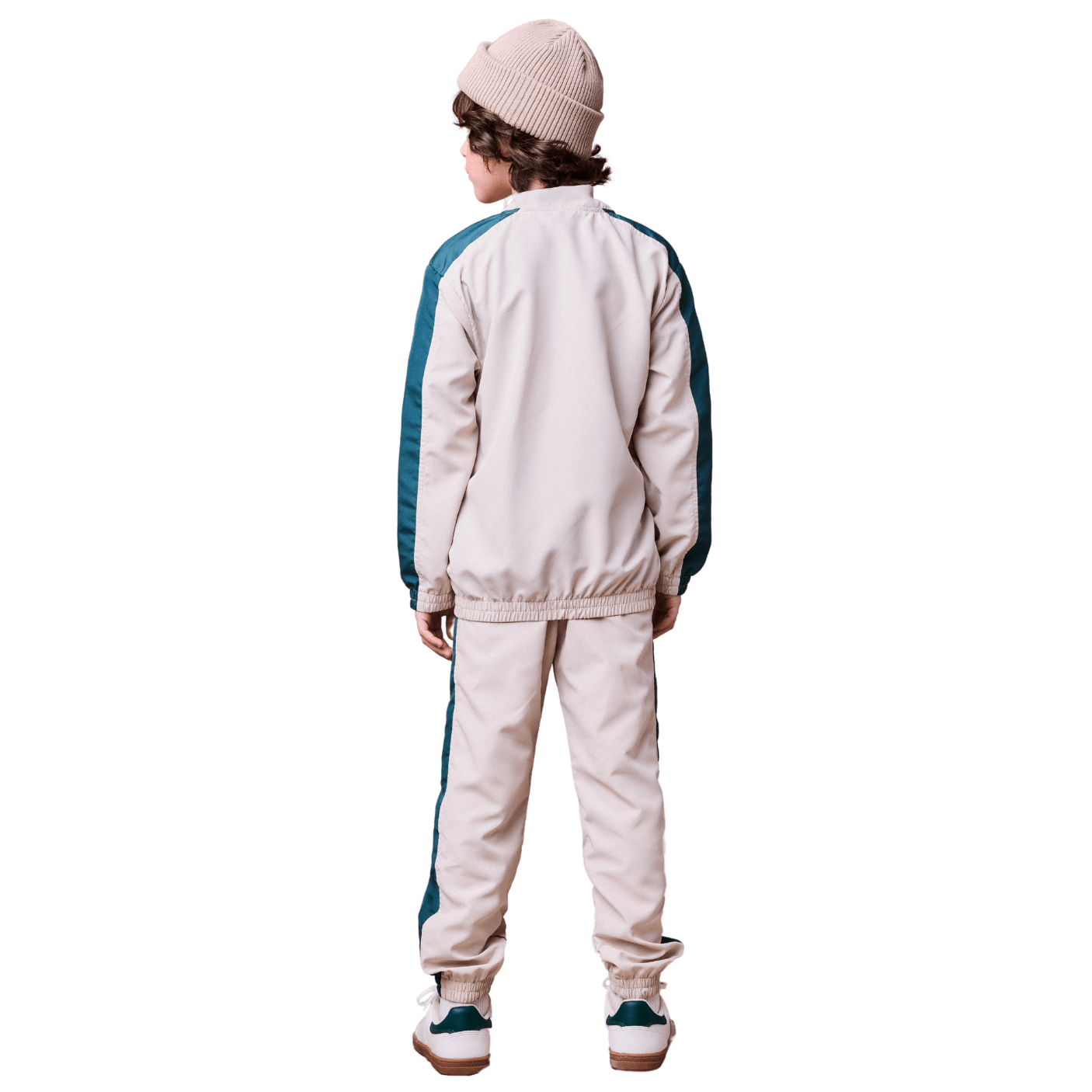 Para um visual moderno e cheio de personalidade, este conjunto esportivo é a escolha perfeita. A jaqueta bege com detalhes em verde traz um design dinâmico e autêntico, enquanto o zíper frontal garante praticidade e um ajuste personalizado. Seu tecido macio e de alta qualidade proporciona aconchego e liberdade de movimento, ideal para o dia a dia.