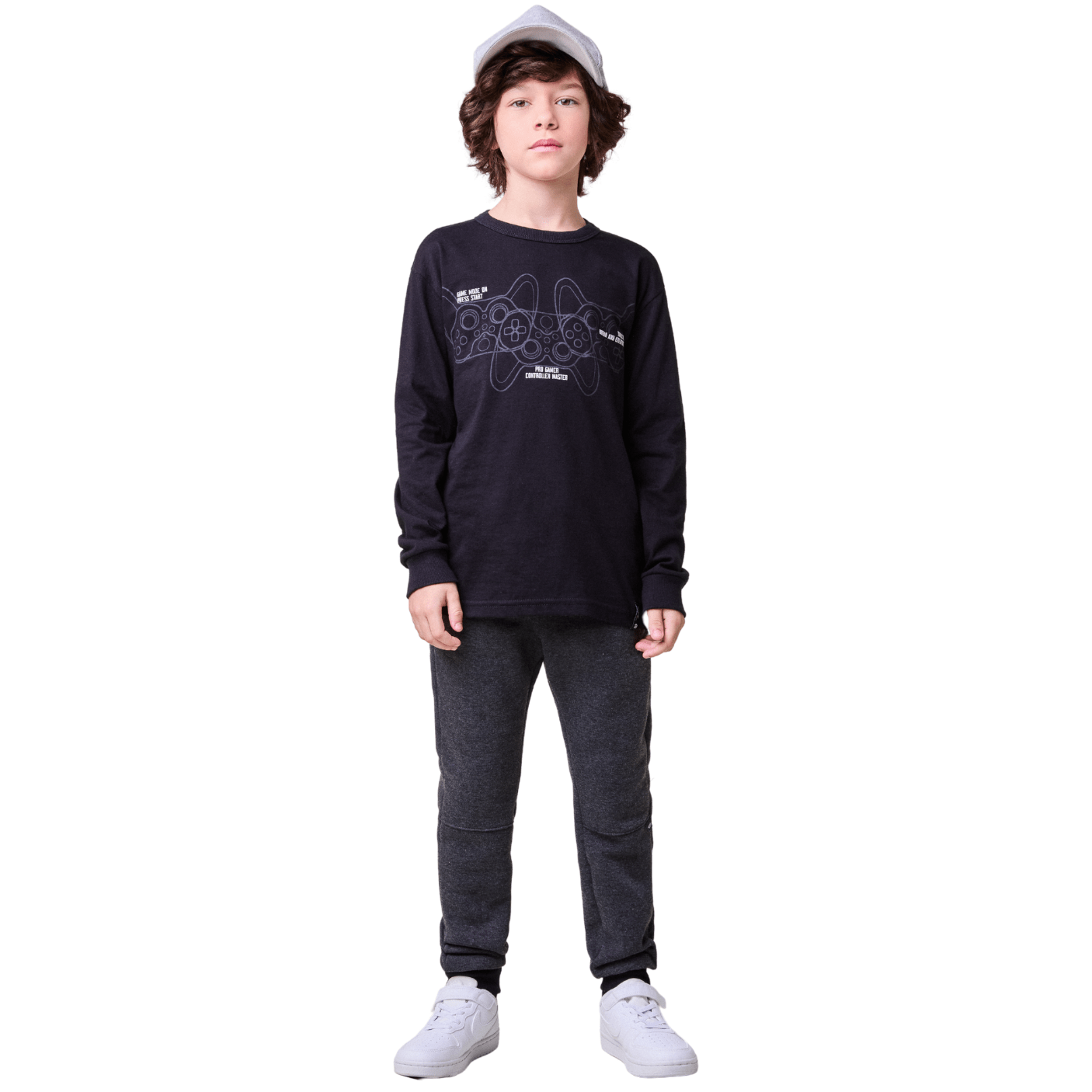 Com o conjunto camiseta Game preta e calça de moletom da Youccie, vestir-se com estilo e conforto nunca foi tão fácil — uma escolha inteligente para meninos que vivem a vida em movimento e com muita personalidade!