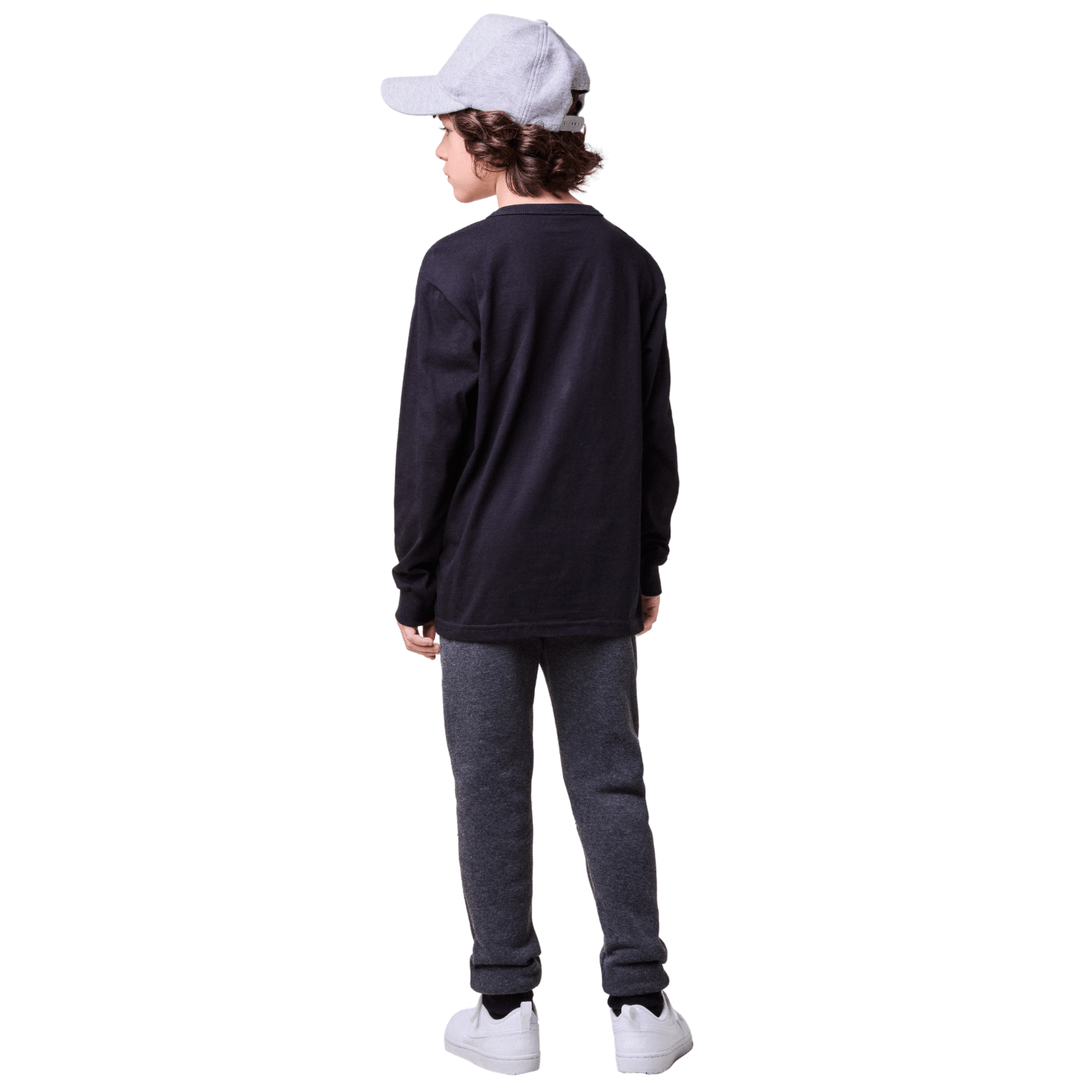 A calça de moletom que completa o conjunto foi pensada para unir praticidade e estilo. Com modelagem confortável, cintura ajustável e acabamento impecável, ela é ideal para acompanhar os pequenos em todas as suas jornadas — seja em casa, na escola ou em um passeio com os amigos. O tecido macio garante aconchego nos dias mais fresquinhos, sem perder a leveza necessária para um look moderno e funcional.