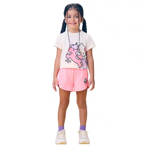O short rosa complementa o conjunto com praticidade e charme, trazendo cós elástico para melhor ajuste e detalhe da Hello Kitty aplicado, reforçando a identidade divertida da peça. Além disso, sua modelagem soltinha valoriza o bem-estar das crianças, permitindo que brinquem, corram e aproveitem cada momento sem preocupações.
