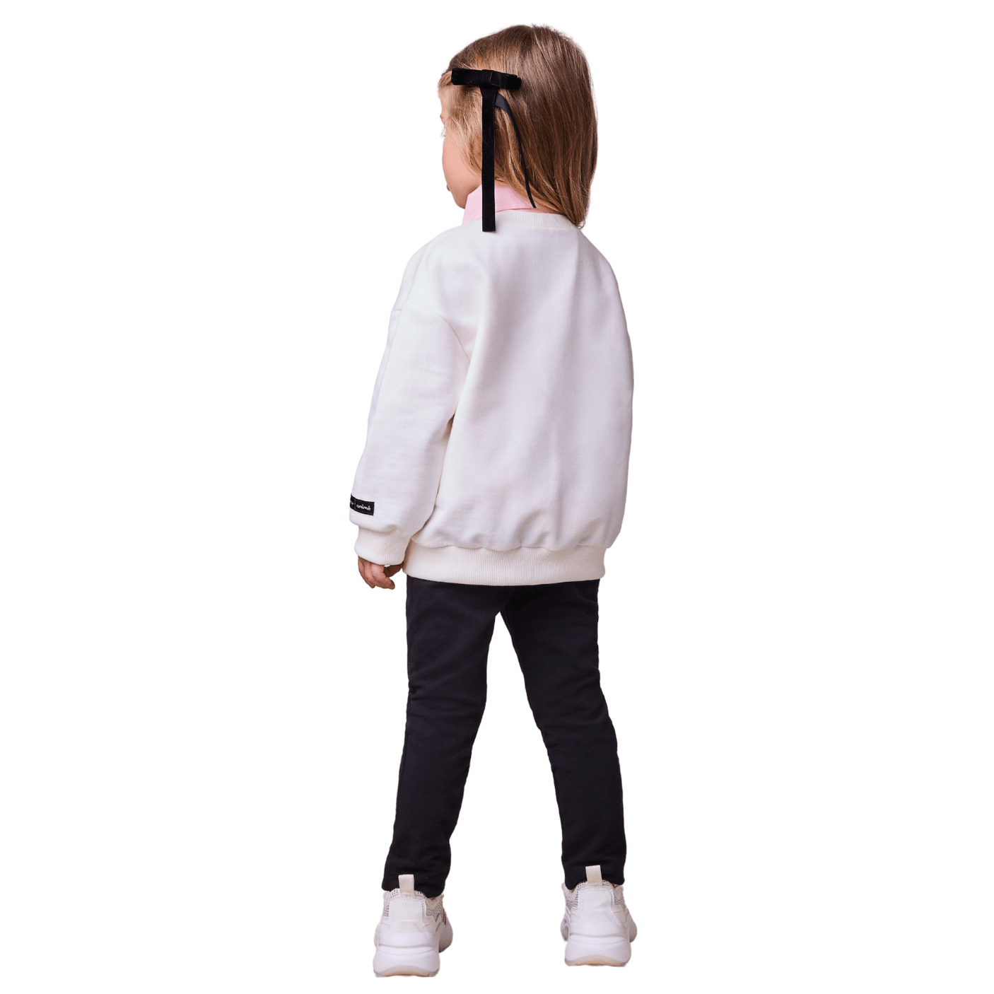 A calça preta ajustada complementa o visual com muita praticidade e estilo. Seu corte moderno se adapta ao corpo de forma confortável, proporcionando liberdade total para brincar, correr e se movimentar com leveza e segurança. A combinação das cores também é um ponto forte do conjunto: o contraste entre o rosa suave e o preto cria um visual equilibrado, versátil e super atual.