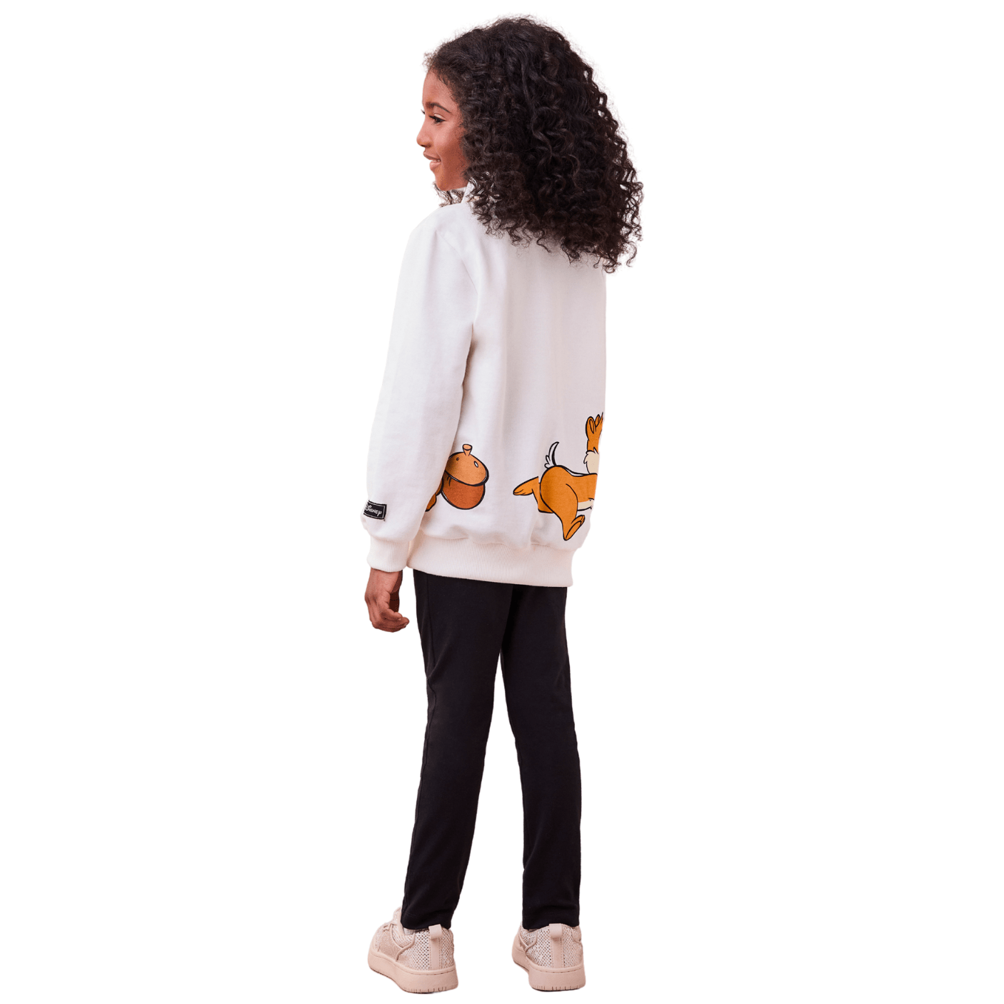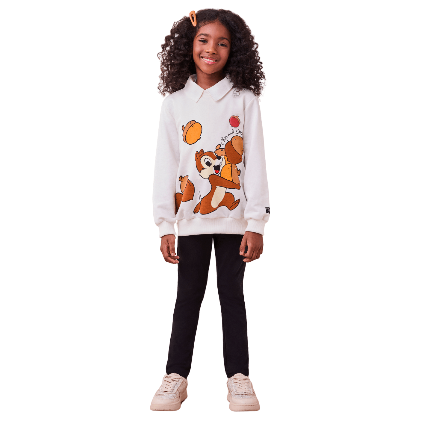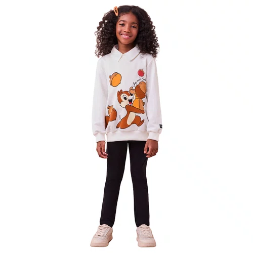 O casaco tem toque macio e quentinho, ideal para proteger as pequenas nos dias de baixa temperatura, sem pesar no visual. A estampa colorida dos icônicos esquilos da Disney dá um toque alegre e lúdico, tornando o look irresistível para as crianças. A calça legging preta complementa o conjunto com praticidade, se ajustando bem ao corpo e permitindo liberdade de movimentos para brincar à vontade.