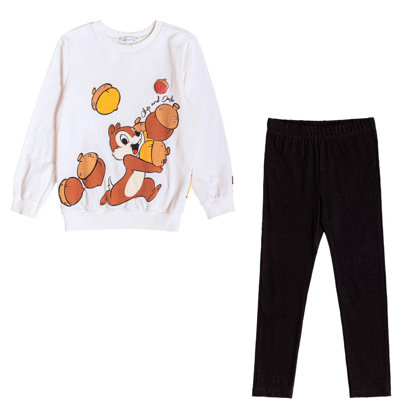Encante-se com este conjunto infantil cheio de charme e diversão! Composto por um casaco off-white super aconchegante com estampa exclusiva dos personagens Tico e Teco e uma calça legging preta versátil, esse look é a combinação perfeita de conforto, praticidade e estilo para os dias mais frios.