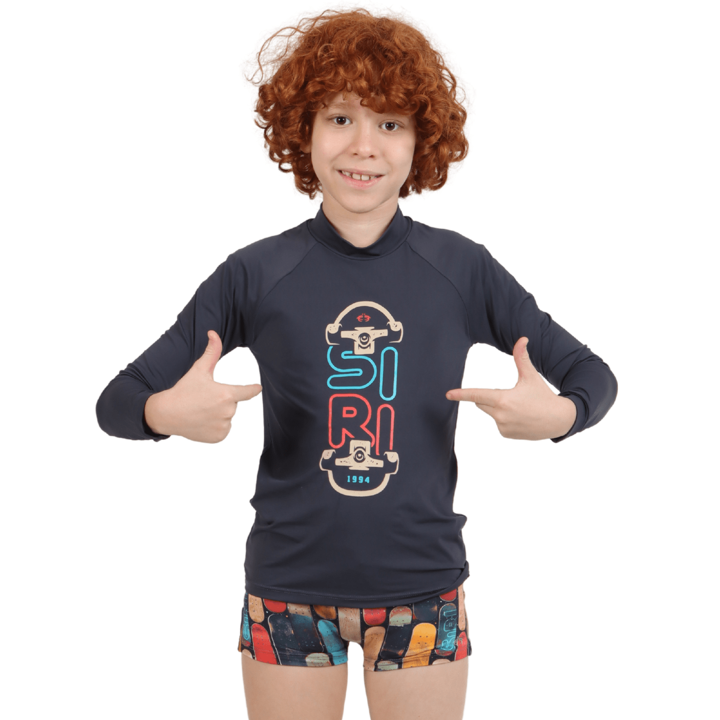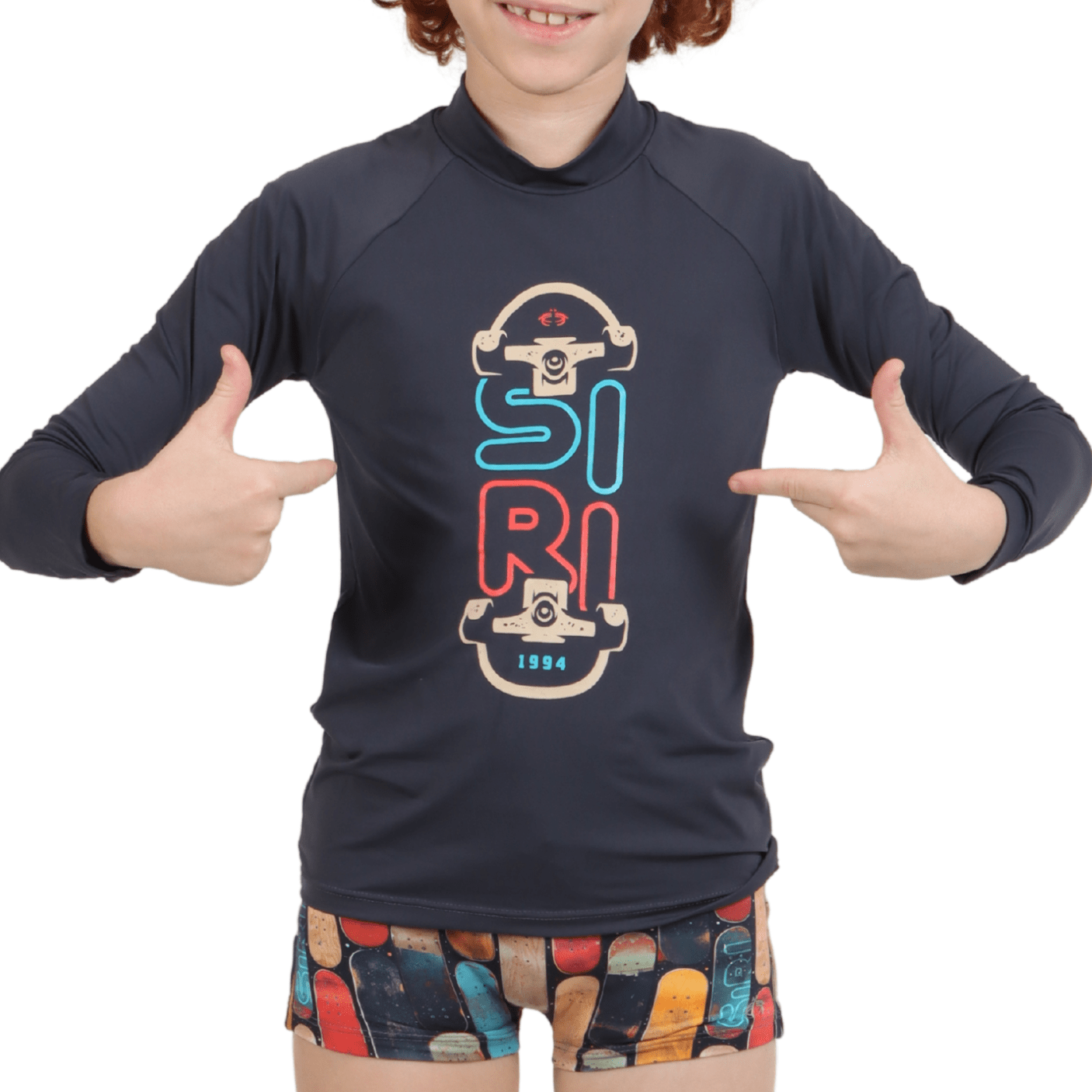Mais do que moda praia, o Conjunto Lucca Manga Longa Skate Siri Kids é sinônimo de proteção, autenticidade e diversão para o verão!