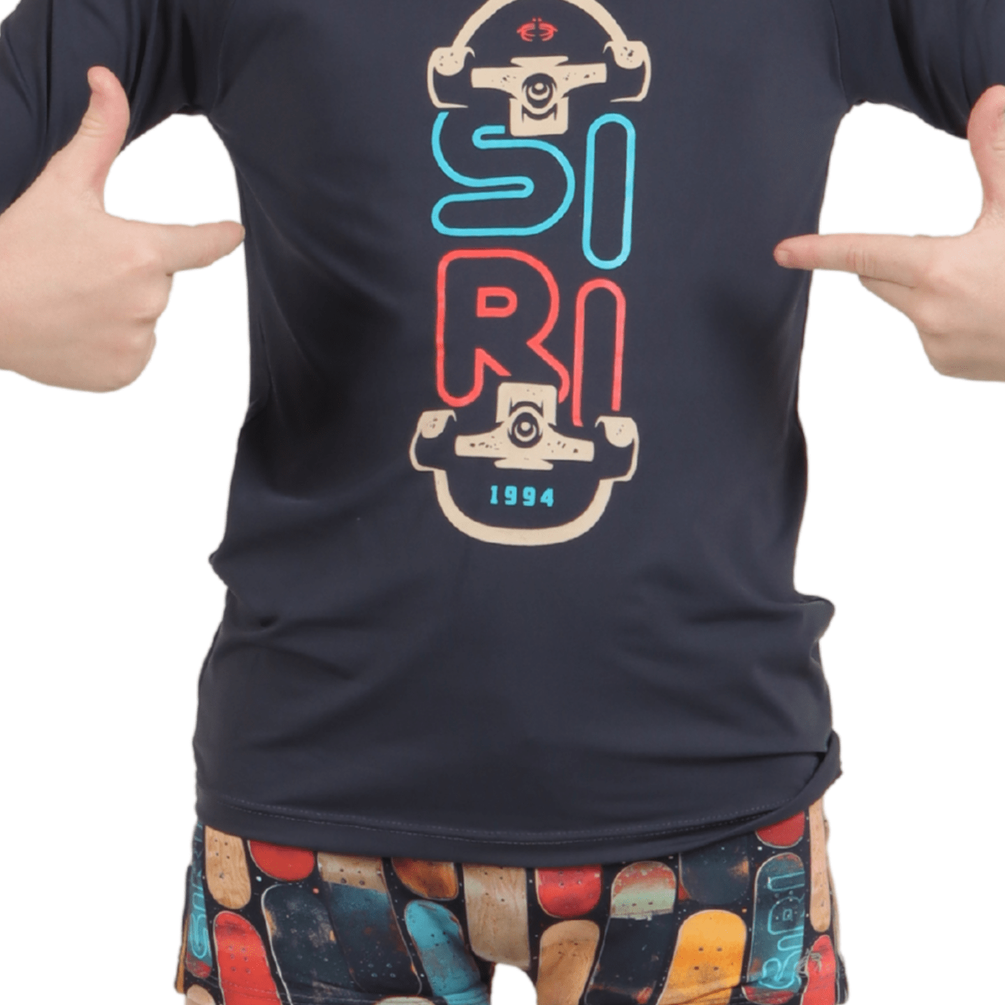 A camiseta com manga longa é confeccionada em tecido tecnológico com proteção UV, oferecendo segurança extra contra os raios solares, ideal para longas horas ao ar livre. Seu design moderno conta com estampa frontal exclusiva da Siri Kids, trazendo o icônico logo em composição com shapes de skate, que deixam o visual ainda mais descolado.