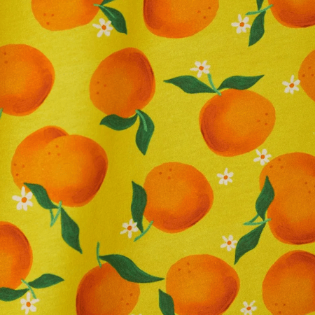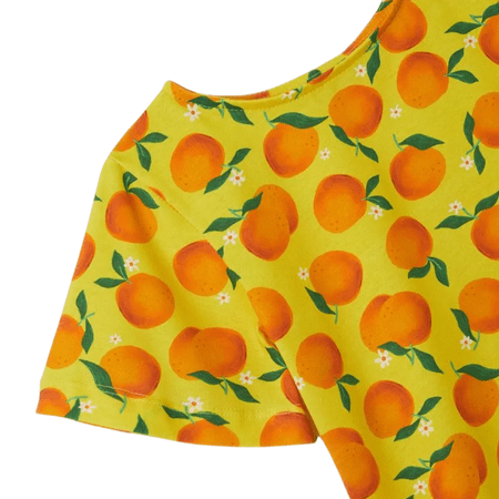Cheio de alegria, cor e conforto! O Conjunto Malha Laranjinhas da Fábula traz o charme lúdico da marca em uma combinação perfeita para as pequenas que adoram brincar com estilo. Com estampa de laranjinhas por toda a peça, fundo amarelo vibrante e toque tropical, ele é a cara do verão.