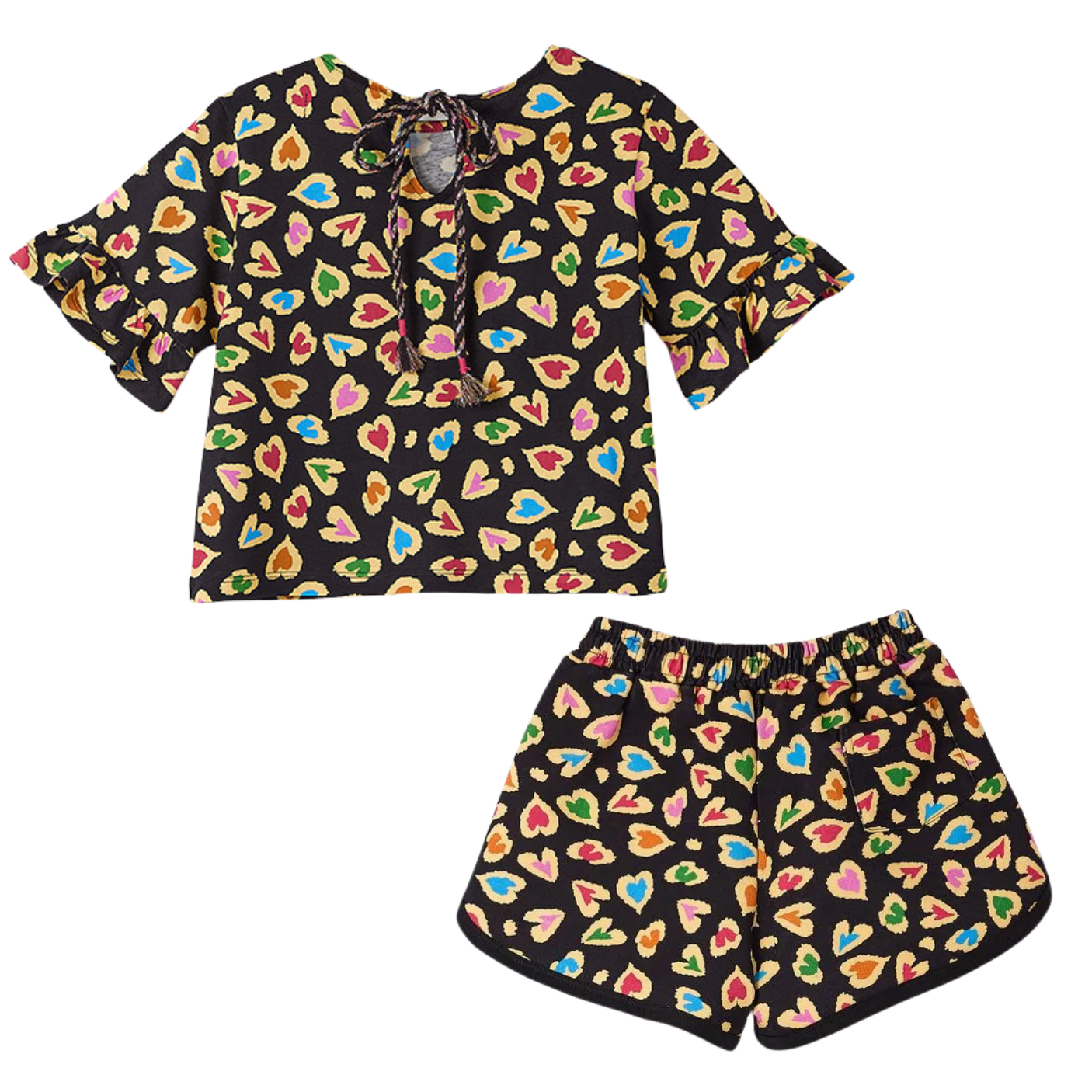 O Conjunto Malha Leve Carinhonça Preto Fábula é puro amor em forma de roupa! Com estampa exclusiva de corações coloridos sobre o fundo preto, ele une conforto, estilo e o toque criativo que só a Fábula sabe trazer para o universo infantil.