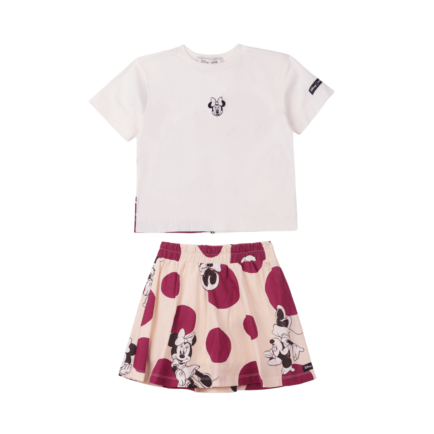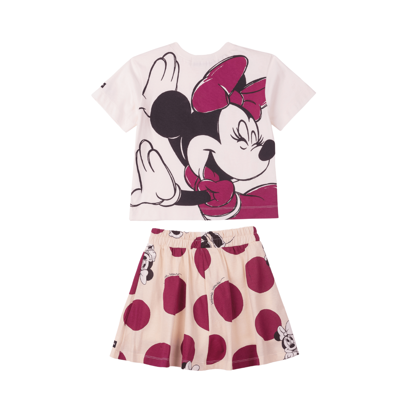 Conjunto infantil com estampa de bolinhas inspirada na Minnie