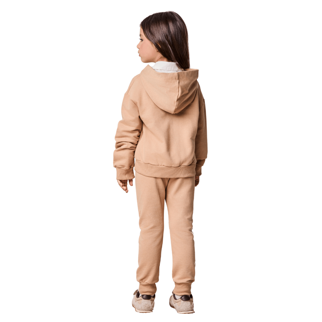 Confeccionado em moletom macio e confortável, o conjunto oferece aquecimento ideal para dias mais frescos, mantendo a criança confortável durante todo o dia. A blusa possui capuz funcional, além de modelagem confortável que proporciona liberdade de movimento para brincar e passear.