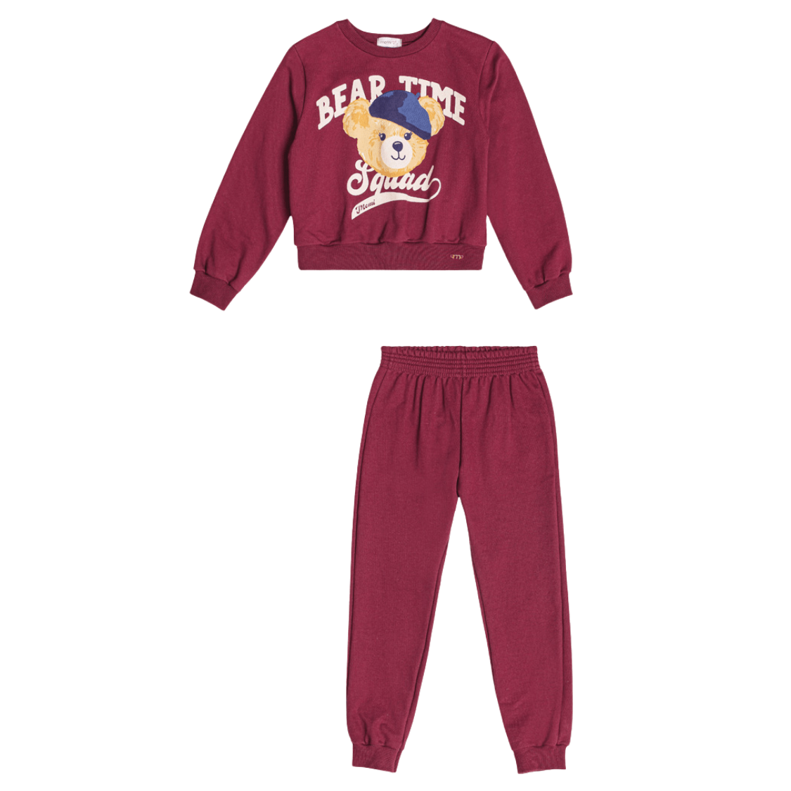 O Conjunto Moletom Bear Time Cranberry Juice Momi é a escolha perfeita para manter as pequenas quentinhas, confortáveis e cheias de estilo nos dias mais frios