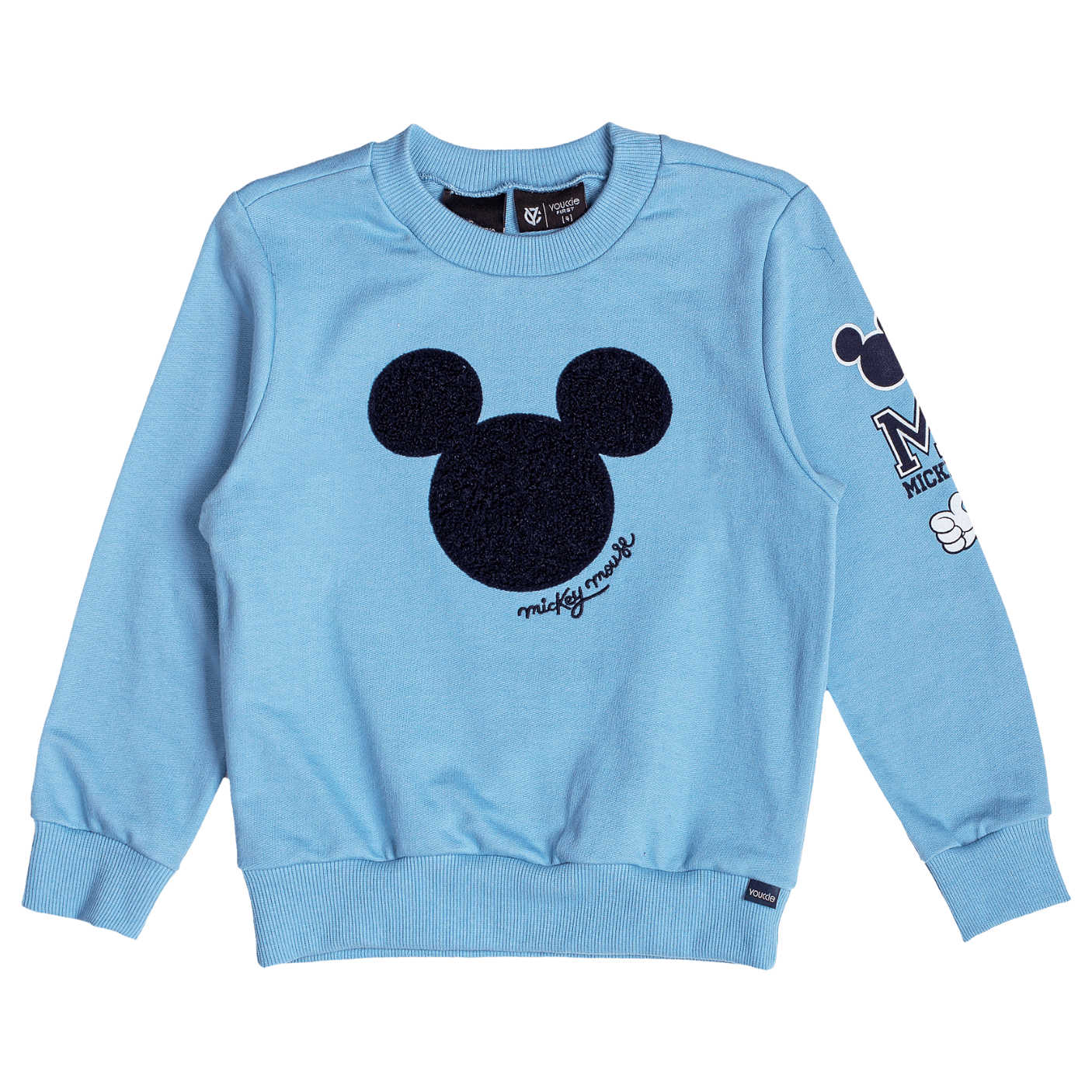O moletom, em tom azul profundo e vibrante, destaca a clássica silhueta do Mickey em textura diferenciada, trazendo um toque lúdico e sofisticado à peça. Detalhes aplicados nas mangas adicionam estilo e movimento, tornando o look ainda mais divertido e moderno. Com modelagem confortável e gola redonda, é perfeito para proteger nos dias mais frios, sem abrir mão da liberdade para brincar, correr e explorar.