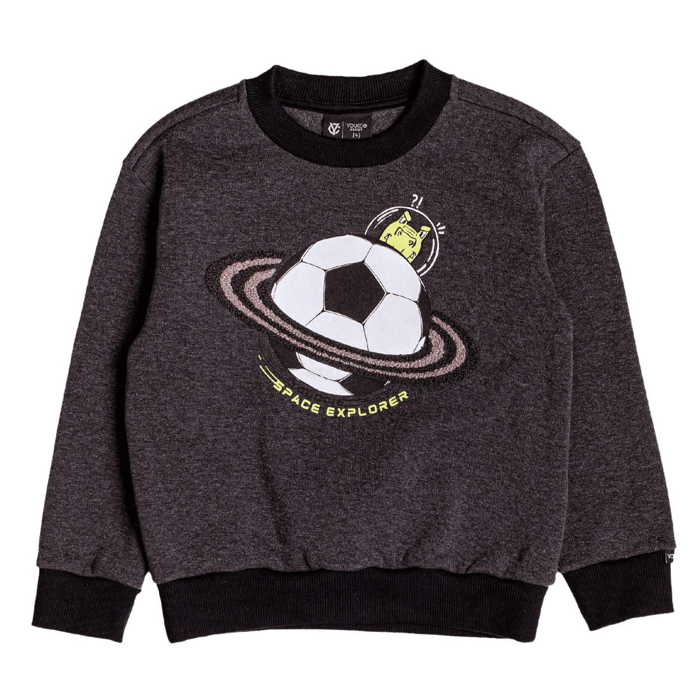 A blusa de manga longa tem caimento confortável e estampa frontal inspirada no universo do futebol — um toque que reforça a energia ativa e vibrante do look. A cor chumbo, neutra e sofisticada, é super versátil e permite criar combinações que vão do casual ao esportivo com facilidade. Os punhos e a barra em acabamento canelado garantem um ajuste perfeito ao corpo, além de proteção extra nos dias frios.