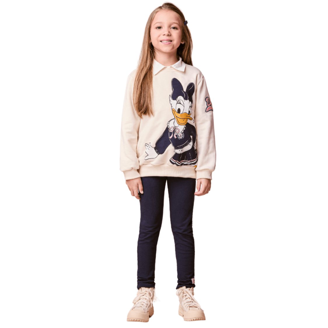 O Conjunto Moletom e Legging Daisy Off e Marinho Momi é a escolha perfeita para unir conforto, estilo e o charme dos personagens mais amados