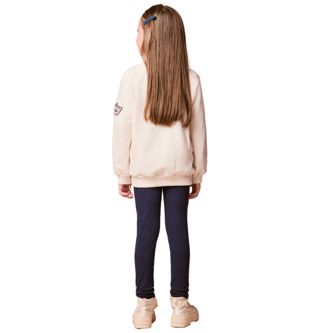• Blusa: Manga longa em moletom com estampa frontal