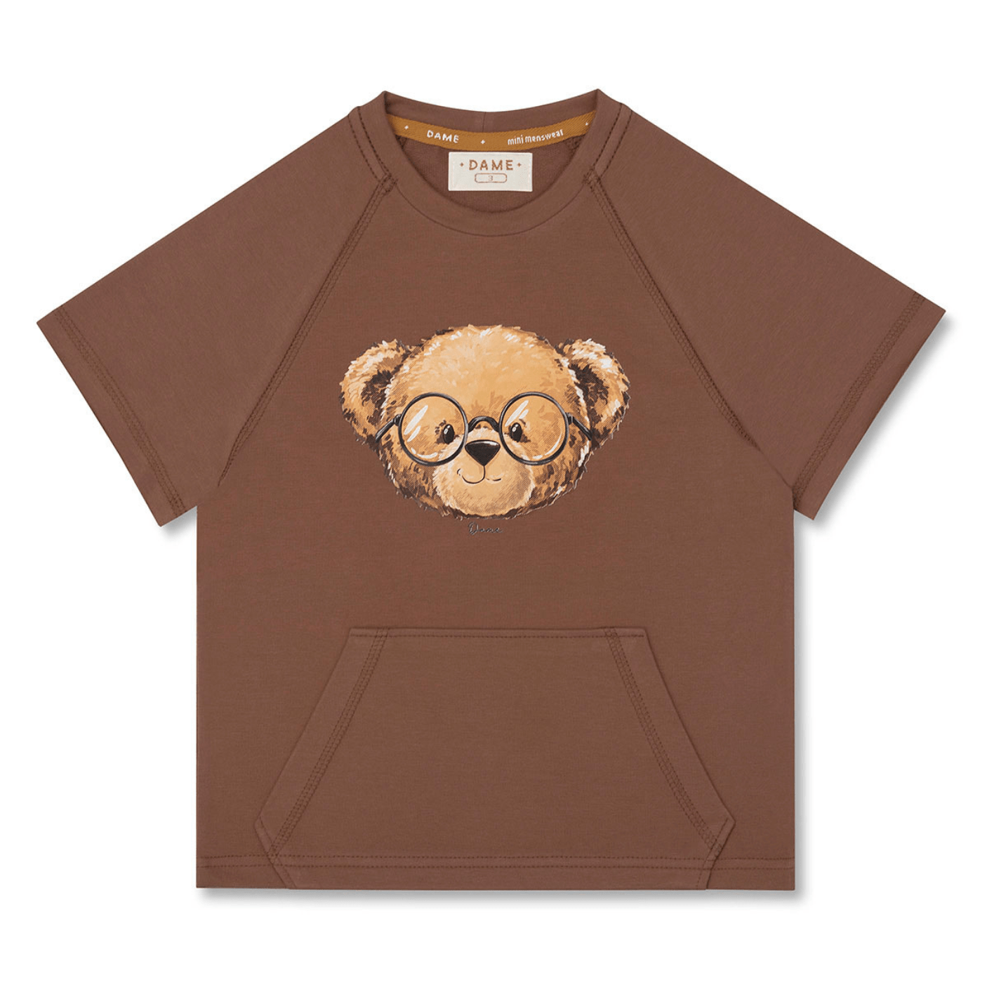 Camiseta com bolso canguru e estampa exclusiva de ursinho com óculos