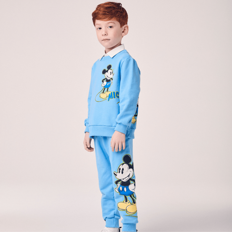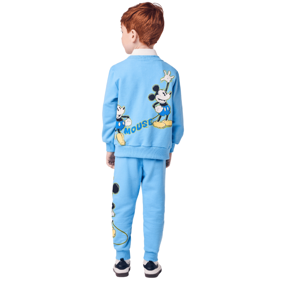 O Conjunto Moletom Mickey Azul Celeste Youccie é perfeito para os meninos que amam o Mickey e querem estar estilosos e confortáveis nos dias mais fresquinhos.