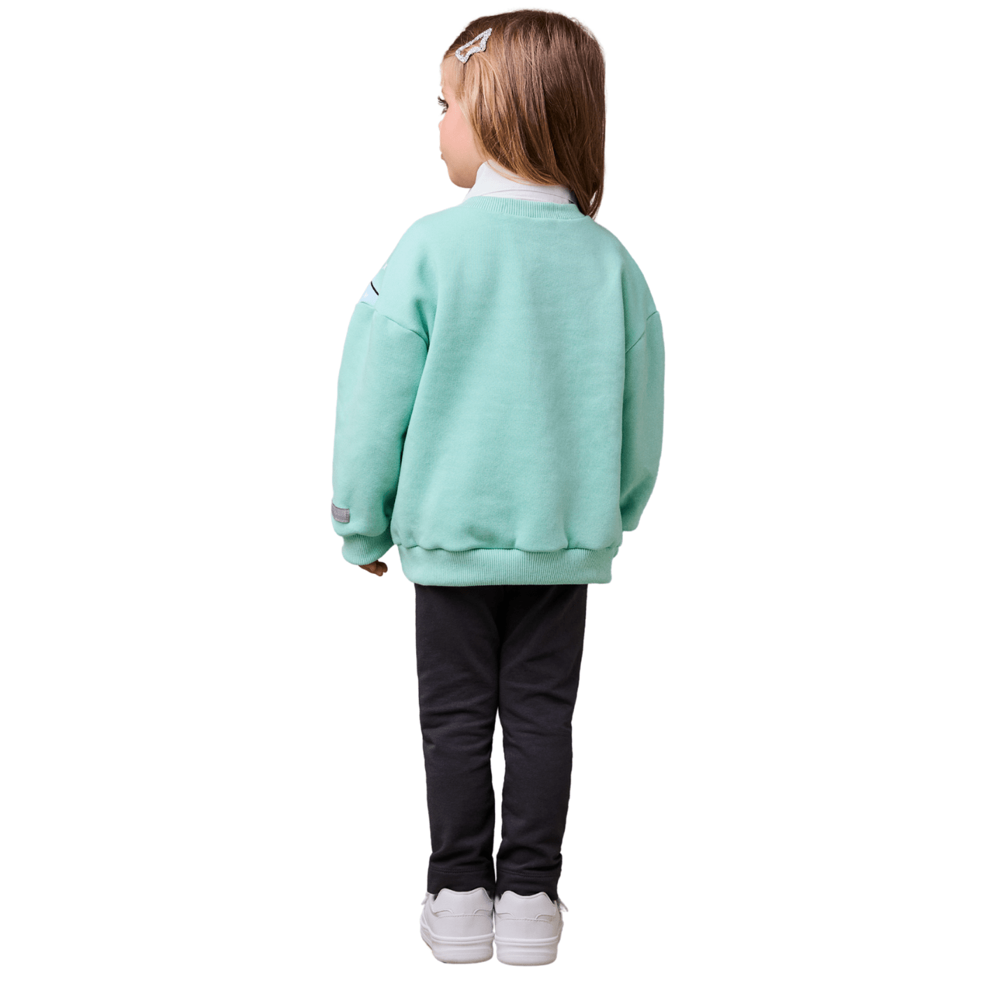 Já a legging preta é puro charme e originalidade: o grande destaque fica por conta da aplicação criativa das pernas da Tinkerbell, bordada com riqueza de detalhes e finalizada com pompons 3D, que simulam as adoráveis sapatilhas da fada. Um toque lúdico que transforma a peça em um item único e cheio de personalidade.