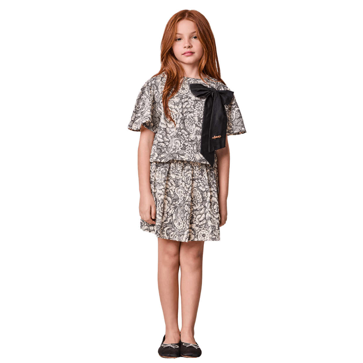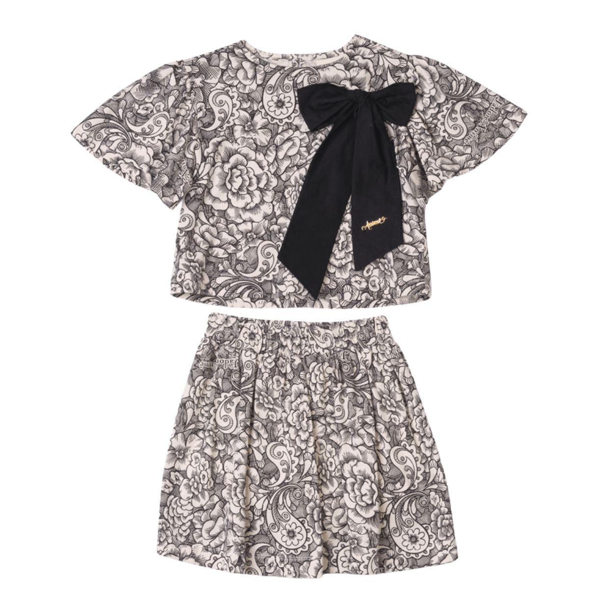 Conjunto Paisley Maxi Laço Preto e Off Anime