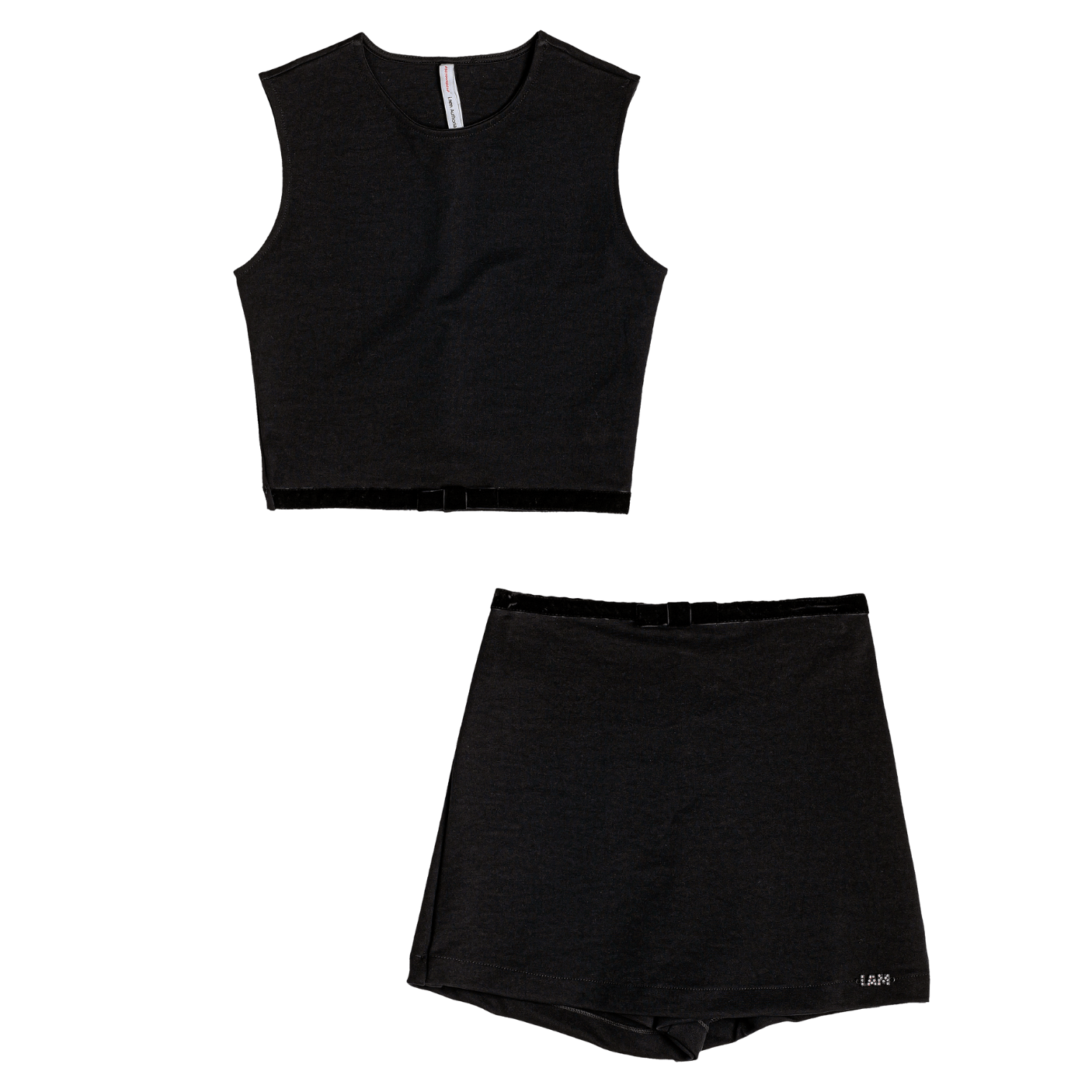 O cropped de modelagem moderna combina perfeitamente com a saia short, criando um duo que pode ser usado tanto junto quanto separado, oferecendo infinitas possibilidades de looks. Juntos, formam uma produção impecável para ocasiões especiais ou momentos mais casuais, com um toque de elegância contemporânea.