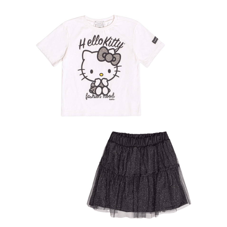O Conjunto Saia de Tule Hello Kitty Preto Brilho Shine Momi é a combinação perfeita entre atitude, delicadeza e estilo fashion.