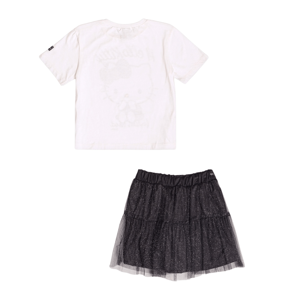 Conjunto Saia de Tule Hello Kitty Preto Brilho Shine Momi
