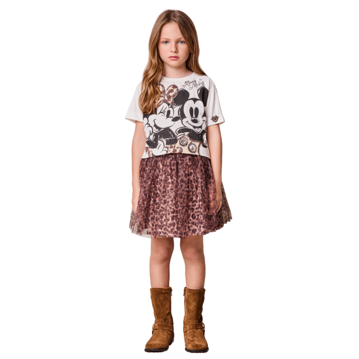 O Conjunto Saia Tule Oncinha e Blusa Minnie Animê é a combinação perfeita entre o charme das personagens clássicas e a tendência fashion do animal print. Um look moderno, divertido e cheio de estilo para as pequenas que amam se destacar!