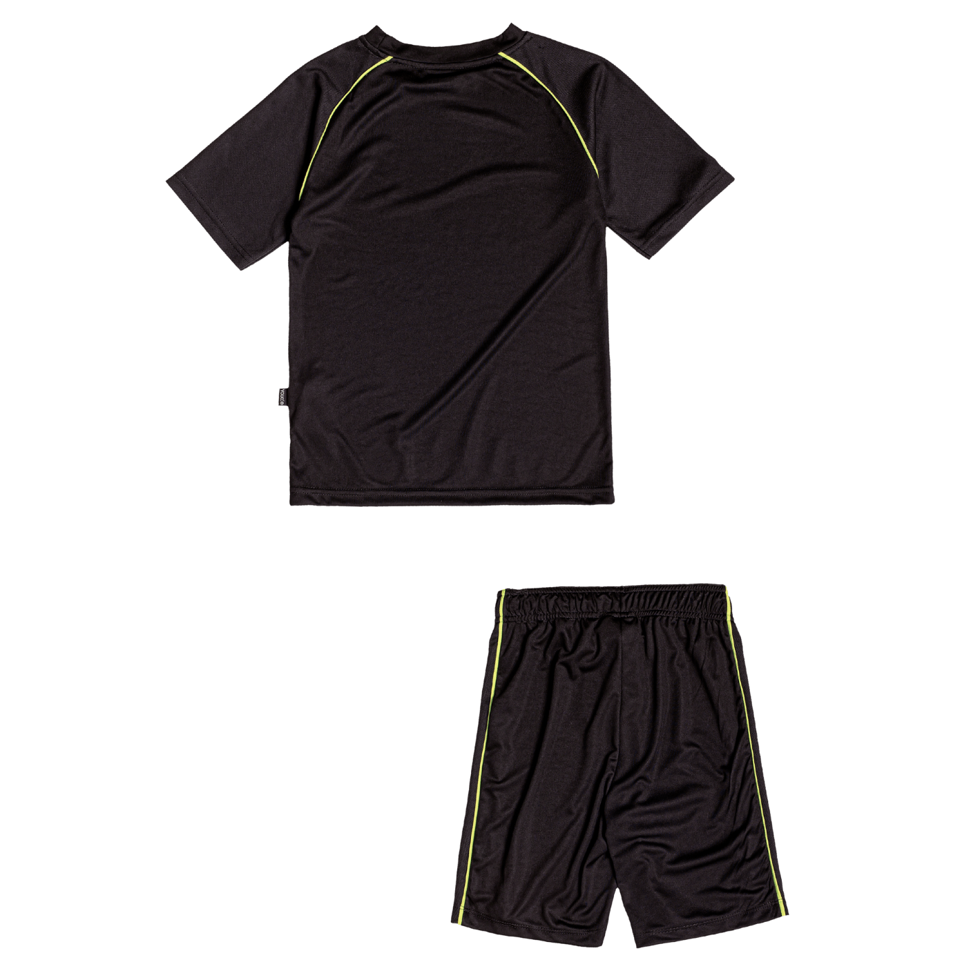 Ideal para os dias mais quentes, esse conjunto combina design moderno e funcionalidade, criando o look perfeito para acompanhar os pequenos em todas as aventuras do dia a dia. A camiseta preta traz um visual clean e contemporâneo, com uma estampa discreta no peito que adiciona aquele toque de estilo urbano sem exageros. Seu caimento é leve, fresco e confortável, permitindo total liberdade de movimento — seja para brincar, passear ou curtir os momentos de lazer com a família.