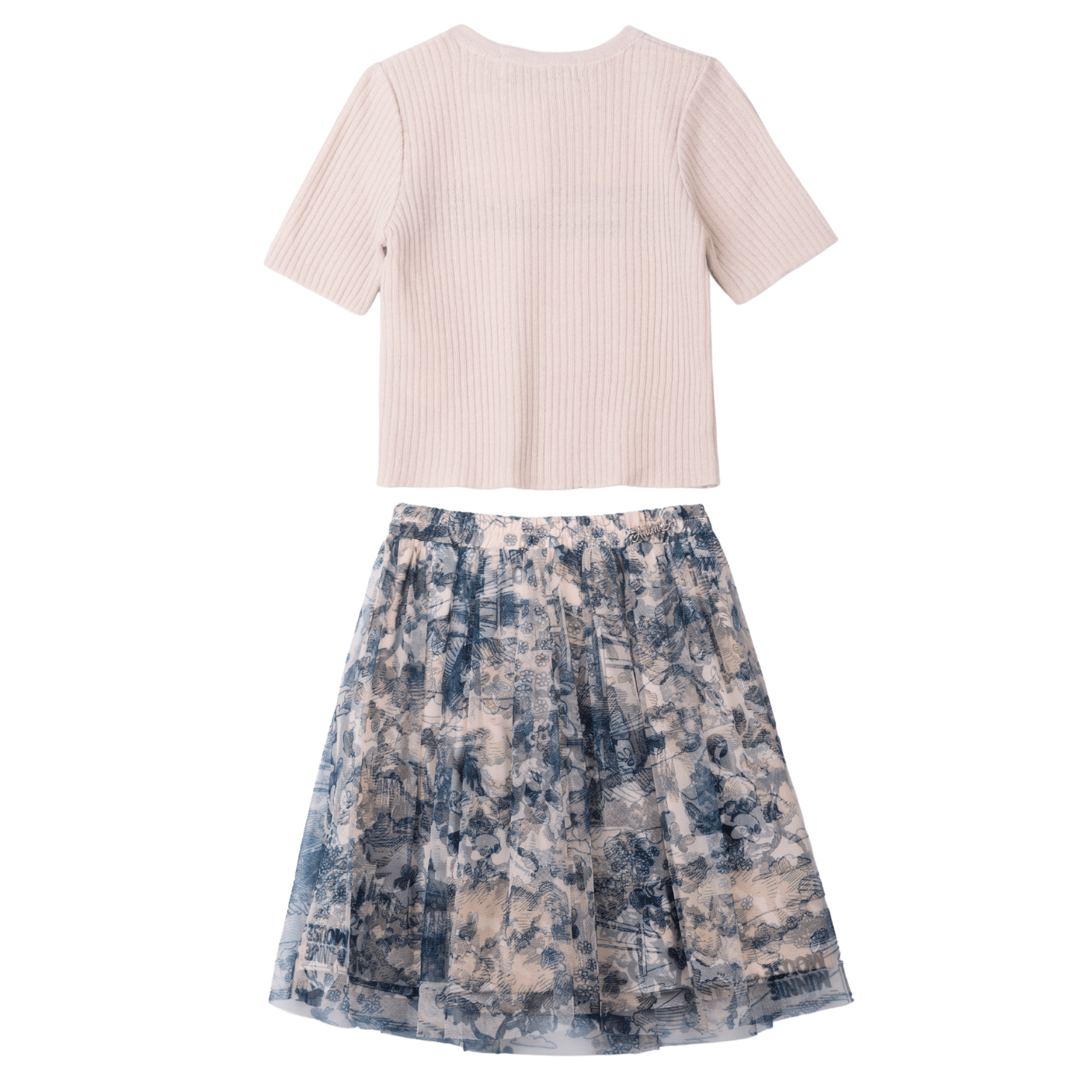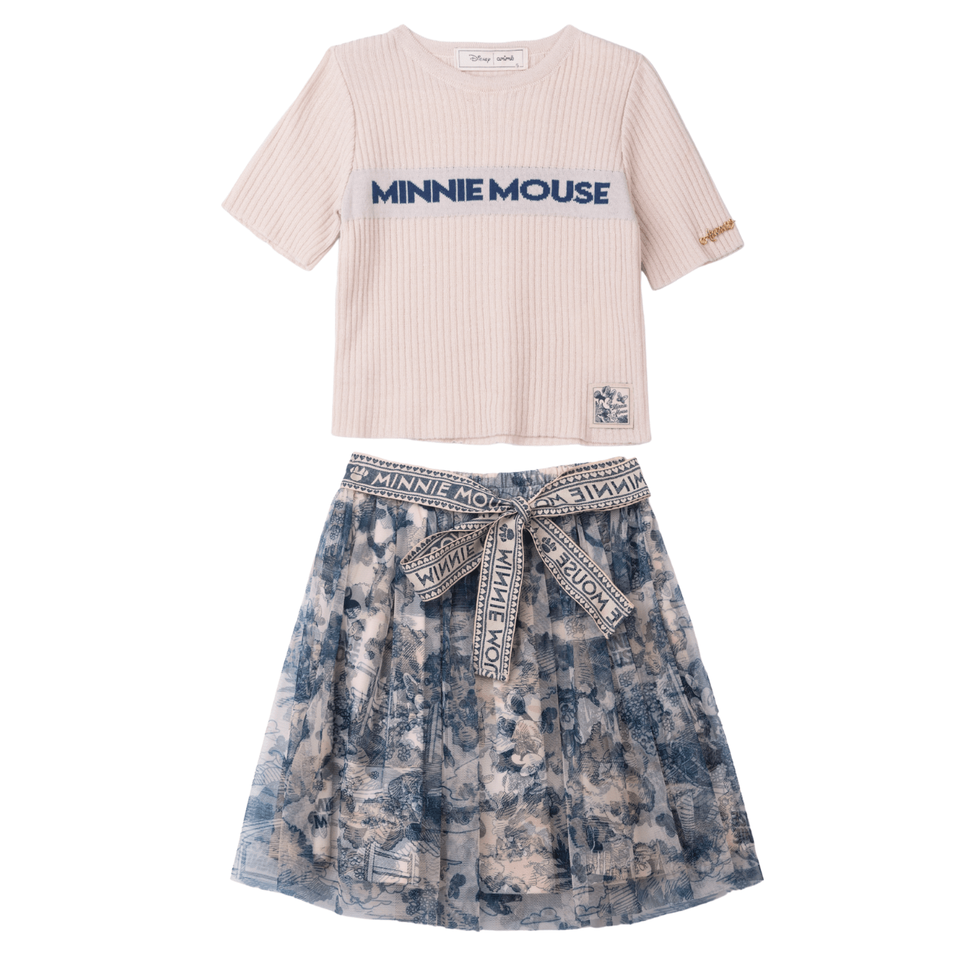 O destaque especial fica por conta da saia de tule com estampa toile, que esbanja delicadeza e leveza. Seu caimento suave e elegante transforma o conjunto em uma opção encantadora para eventos especiais, festinhas, passeios em família ou até mesmo para deixar o dia a dia mais mágico. O toque final fica por conta do laço decorativo com lettering “Minnie Mouse”, que valoriza ainda mais a peça e traz aquele charme irresistível que toda menina adora.