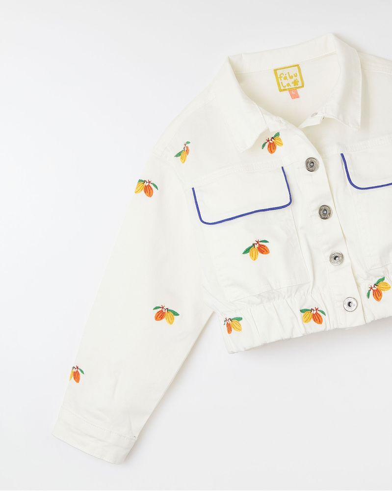 Jaqueta Infantil Bordada Cacaus em Sarja Off White – Estilo, cor e conforto para os dias fresquinhos