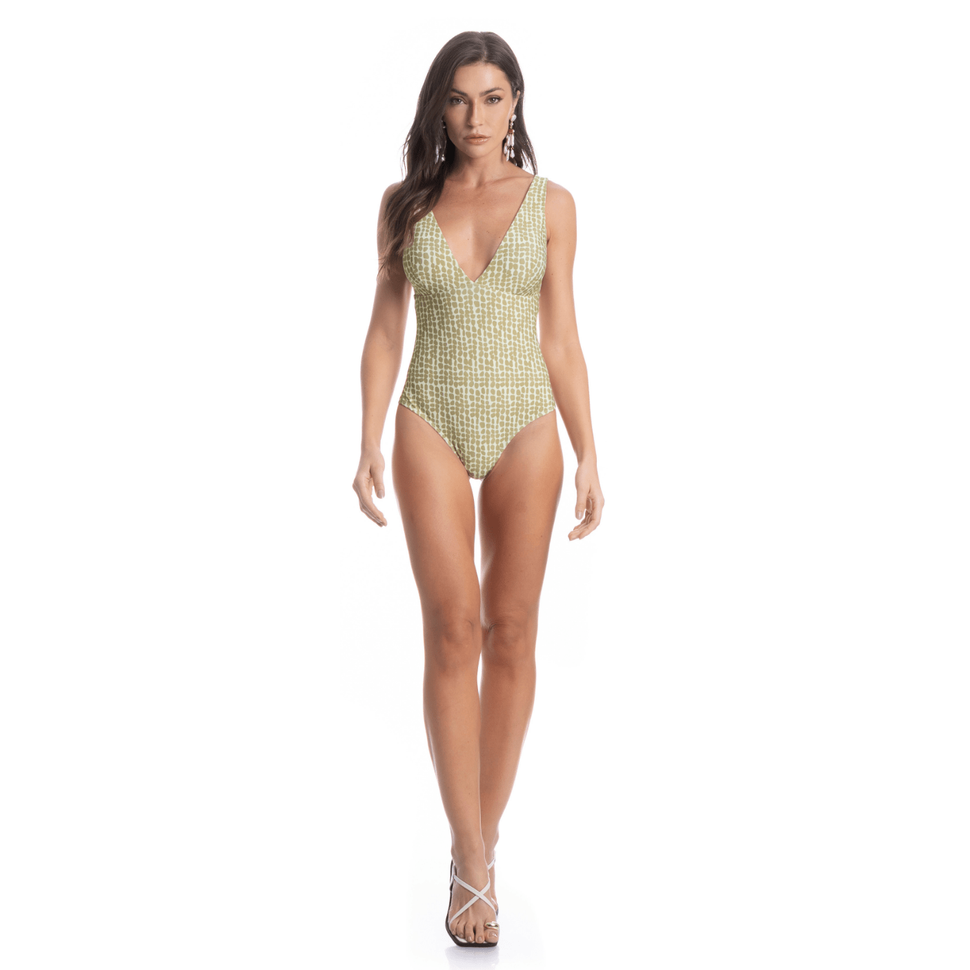 A estampa exclusiva em tons de verde traz leveza e um charme orgânico inspirado nas texturas do mar e da natureza.