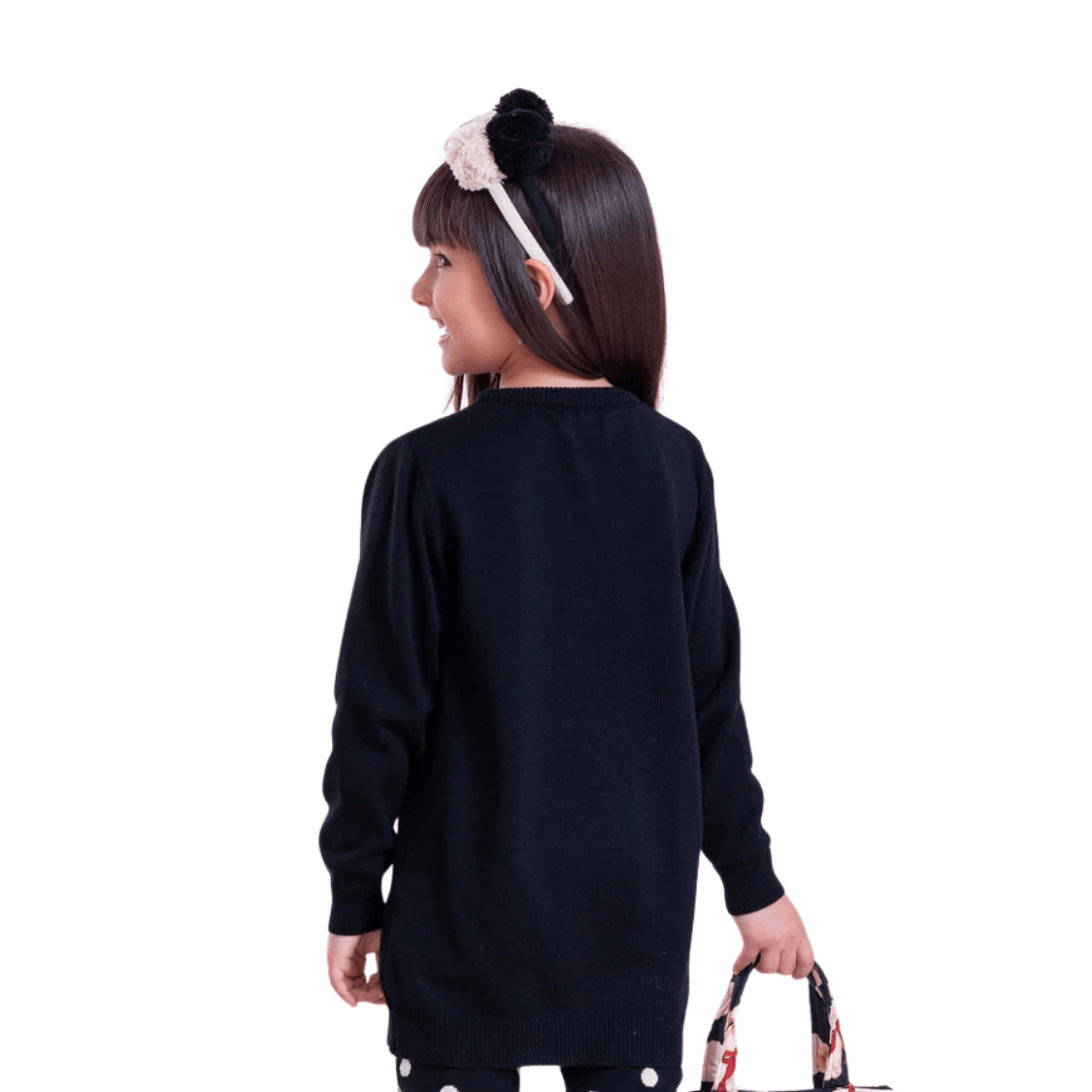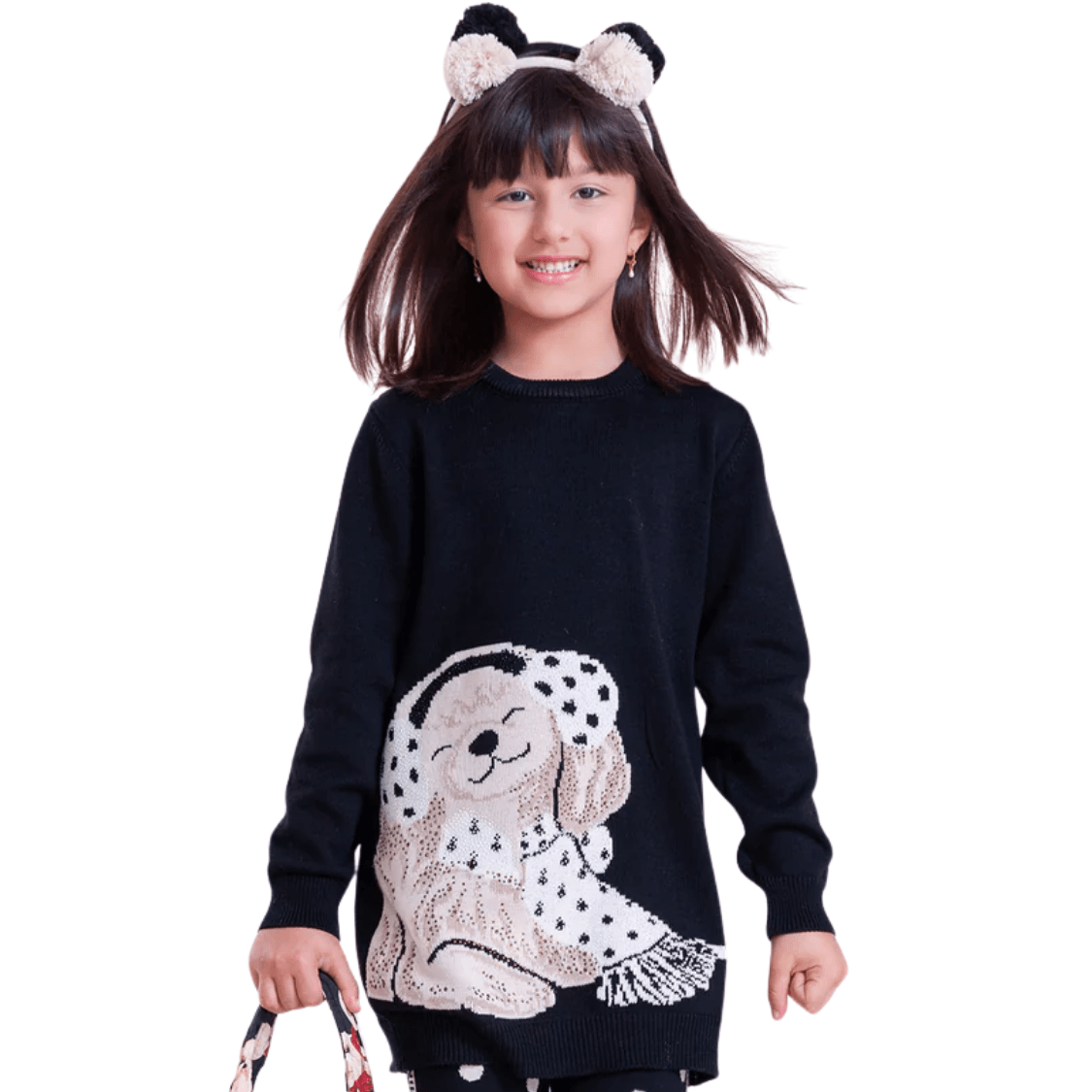 A Maxi Blusa Tricot Cachorrinho Cristais Preto Pituchinhus é a peça perfeita para meninas que amam um visual confortável, delicado e cheio de estilo. Com um toque lúdico e detalhes sofisticados, ela transforma qualquer look em algo especial.