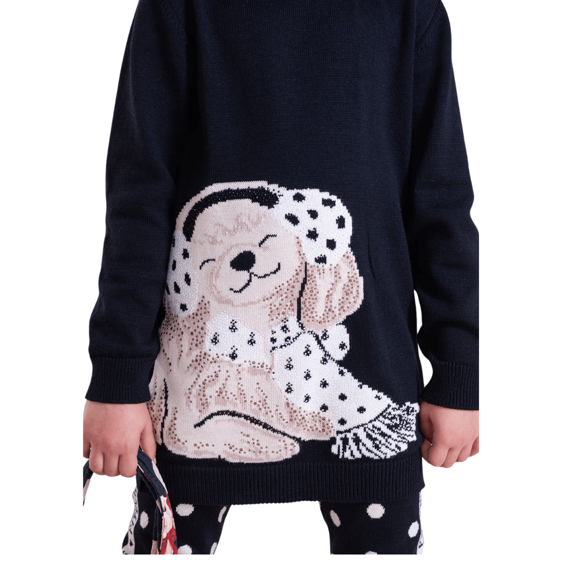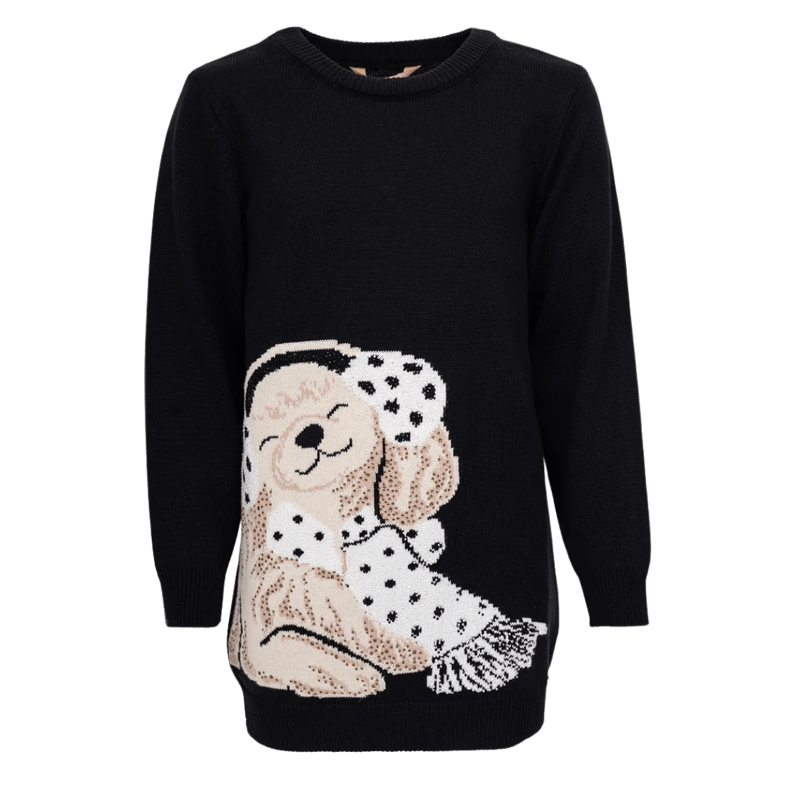 Maxi Blusa Tricot Cachorrinho Cristais Preto Pituchinhus