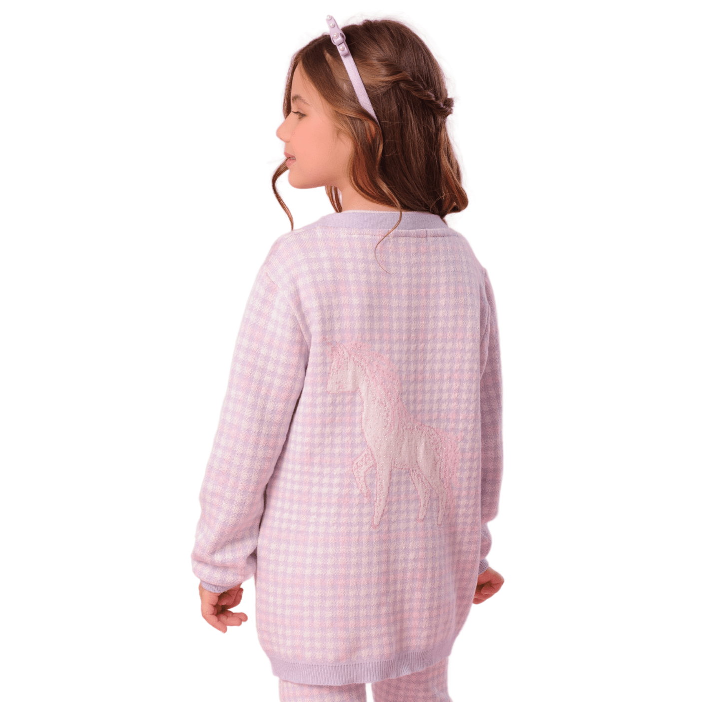O aconchego do tricot encontra o encanto do universo lúdico neste Maxi Casaco Xadrez com Unicórnio Cristal da Pituchinhus – uma peça que une conforto, elegância e um toque mágico para deixar os dias frios muito mais estilosos.