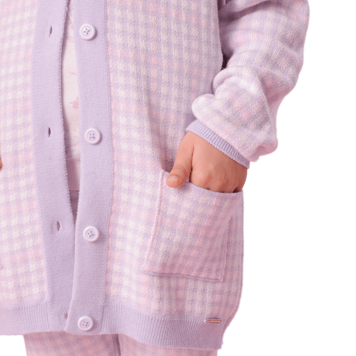 Com gola em V e acabamentos canelados nos punhos e na barra, o modelo proporciona um caimento estruturado e delicado, ideal para proteger do frio sem pesar no visual. Os bolsos frontais retangulares acrescentam funcionalidade e charme, enquanto a estampa xadrez exclusiva da marca, combinada à aplicação do unicórnio em cristal, traz um ar encantador e único que é a cara da coleção Pituchinhus.