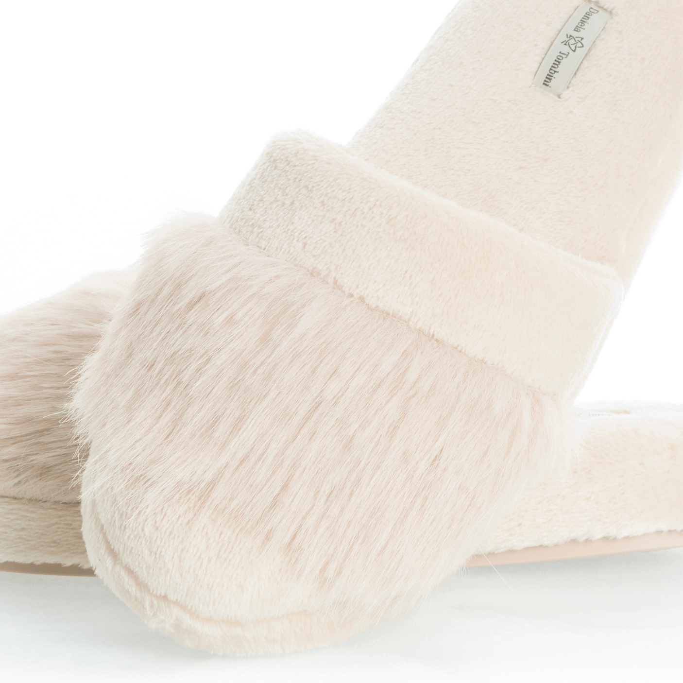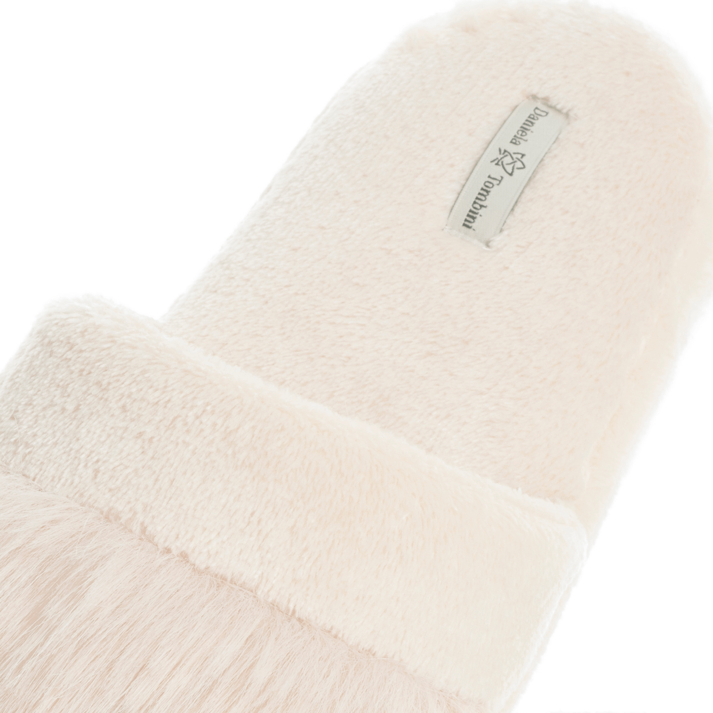 O grande destaque fica por conta dos recortes em pelo sintético aplicados à gáspea, que conferem um toque de luxo e delicadeza, além de enriquecer o visual com um ar moderno e acolhedor. A sola antiderrapante oferece segurança no caminhar, adaptando-se a diferentes tipos de piso com firmeza.