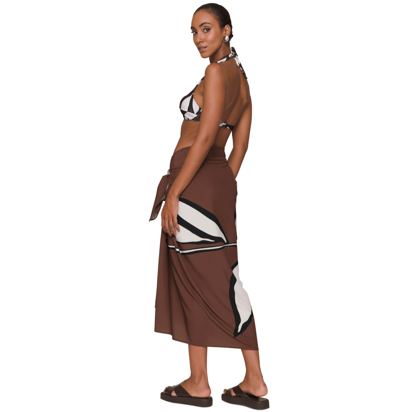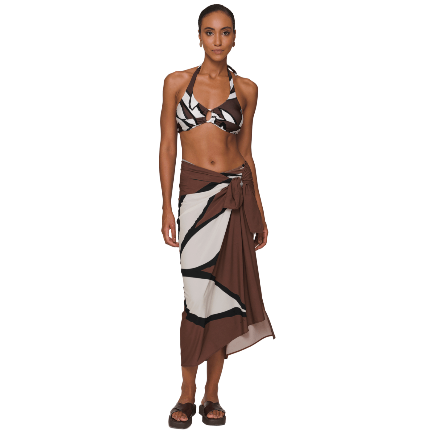 A estampa exclusiva de folhagens em tons terrosos traz autenticidade e elegância, refletindo o estilo contemporâneo da Lua Lua e harmonizando perfeitamente com a paleta natural da temporada. Sua versatilidade é um diferencial: pode ser usado de diversas maneiras — como saia amarrada na cintura, vestido improvisado, saída de praia ou até mesmo como echarpe estilosa.